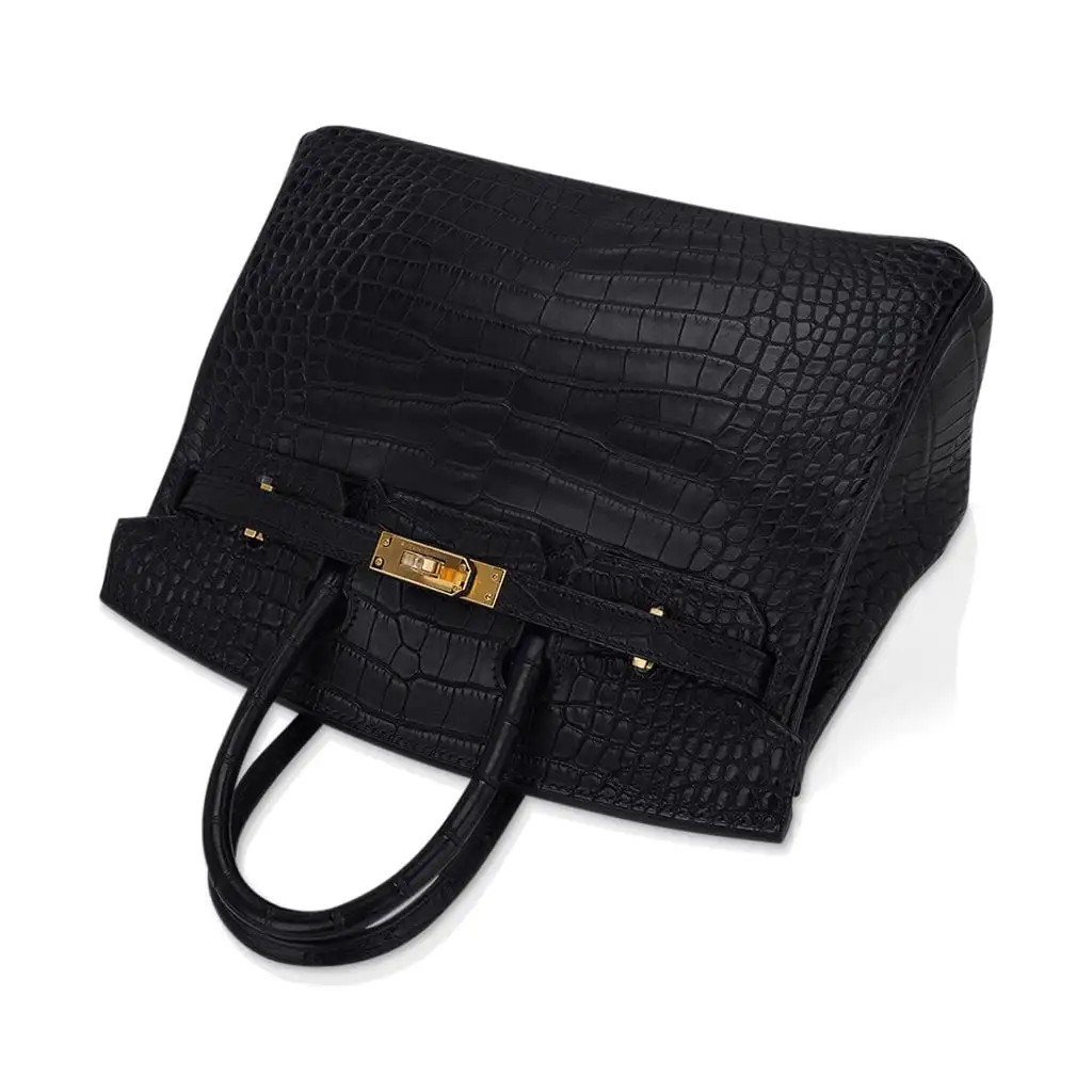Hermes Birkin 25 Bag Black Matte Alligator with Gold Hardware