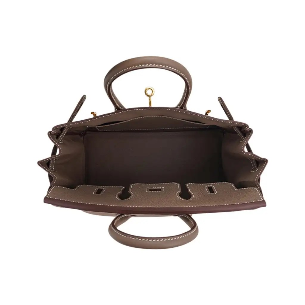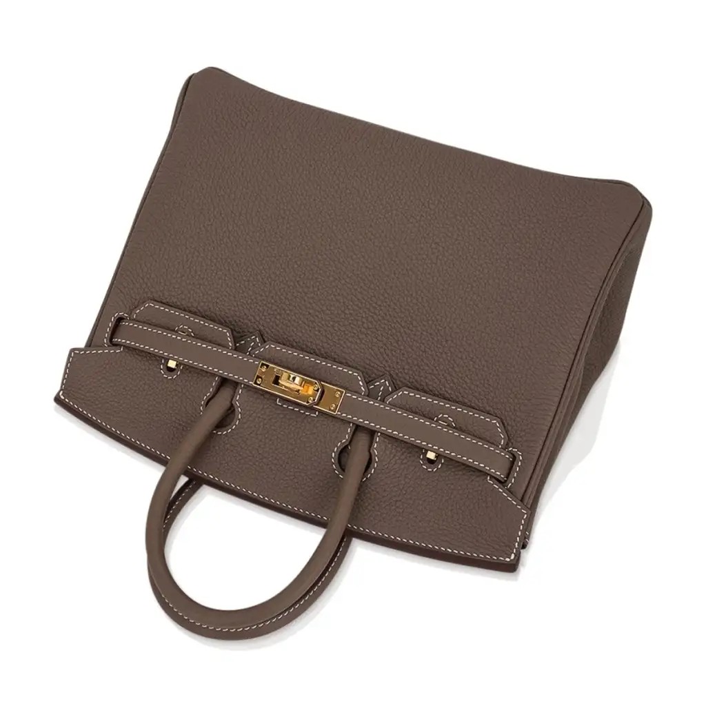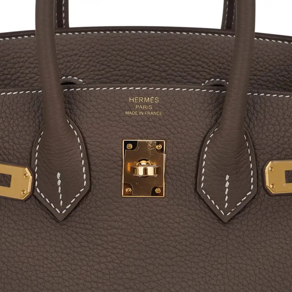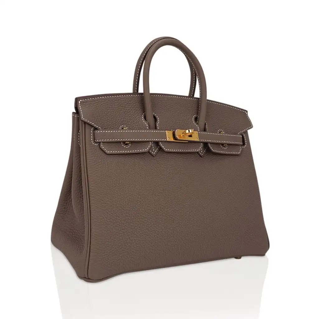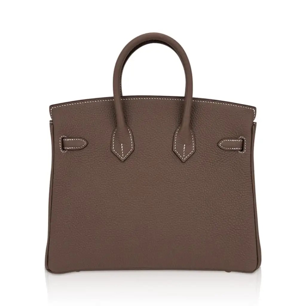 Guaranteed authentic Hermes Birkin 25 bag featured in coveted Etoupe.