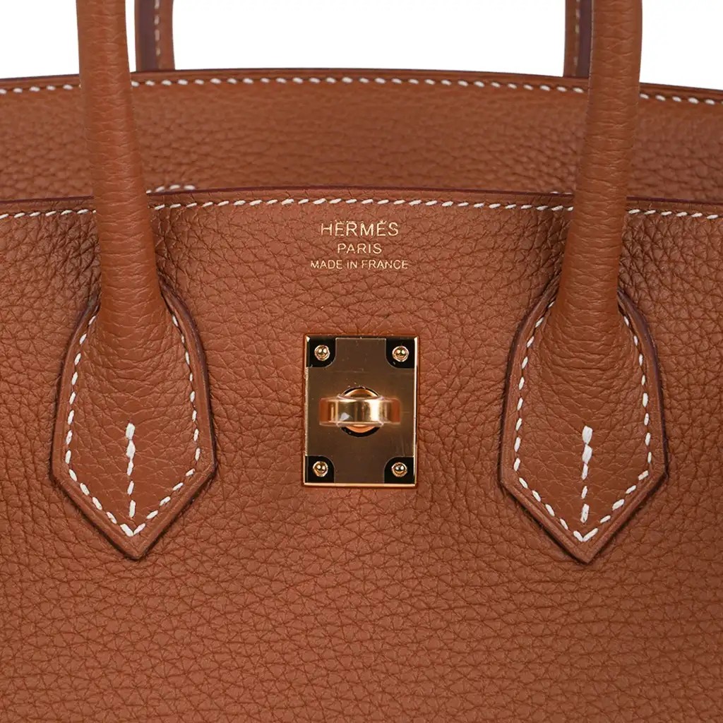 Hermes Birkin 25 bag featured in classic Gold.