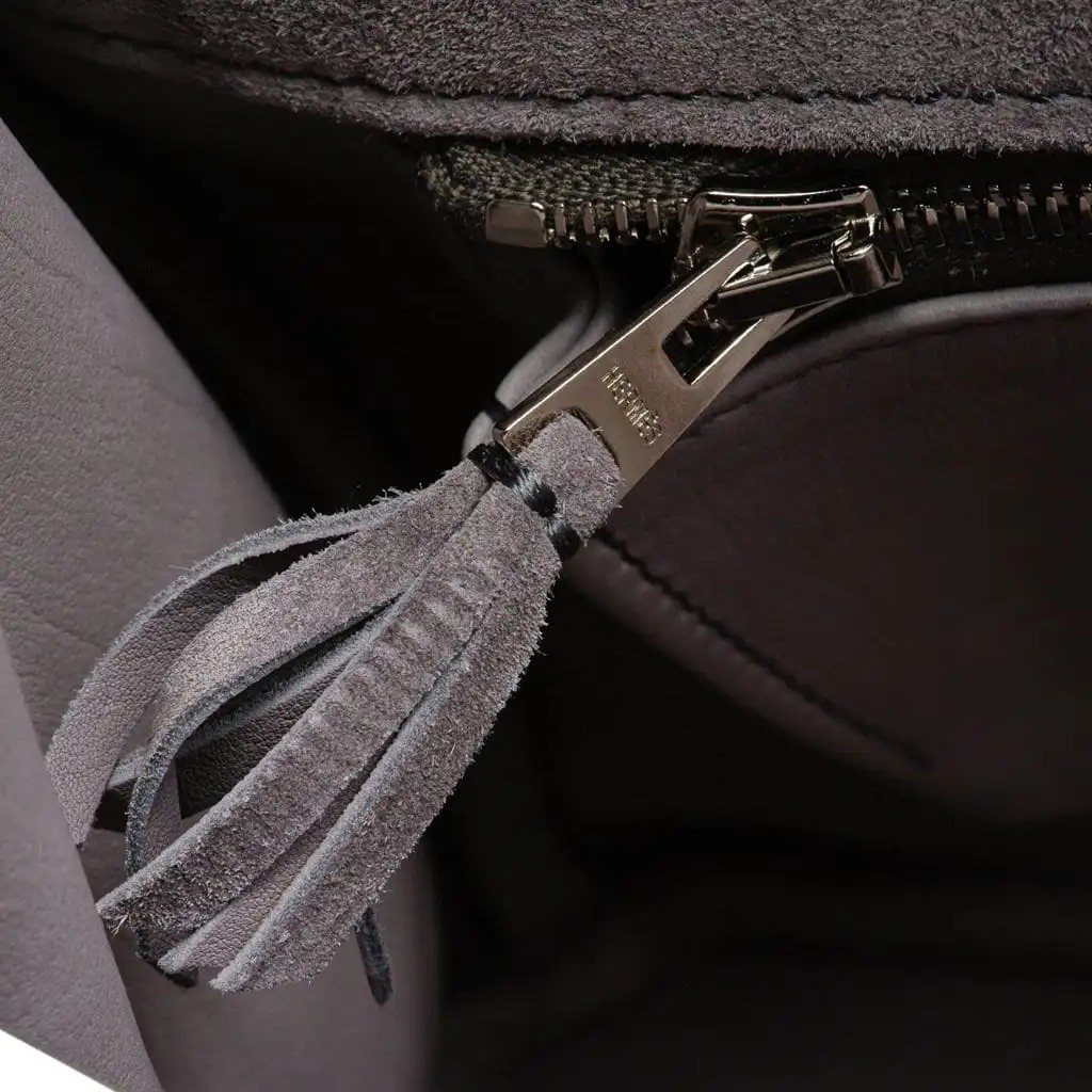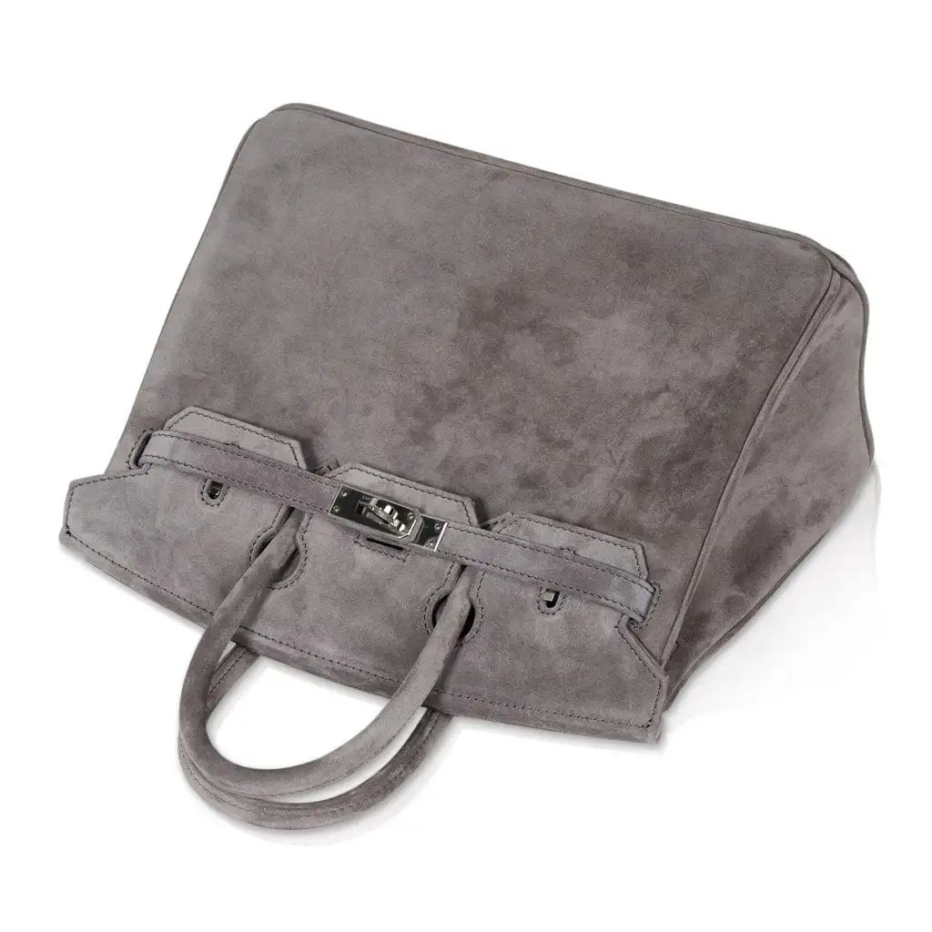 This subtle shade of gray Hermes birkin bag is accentuated with palladium hardware.