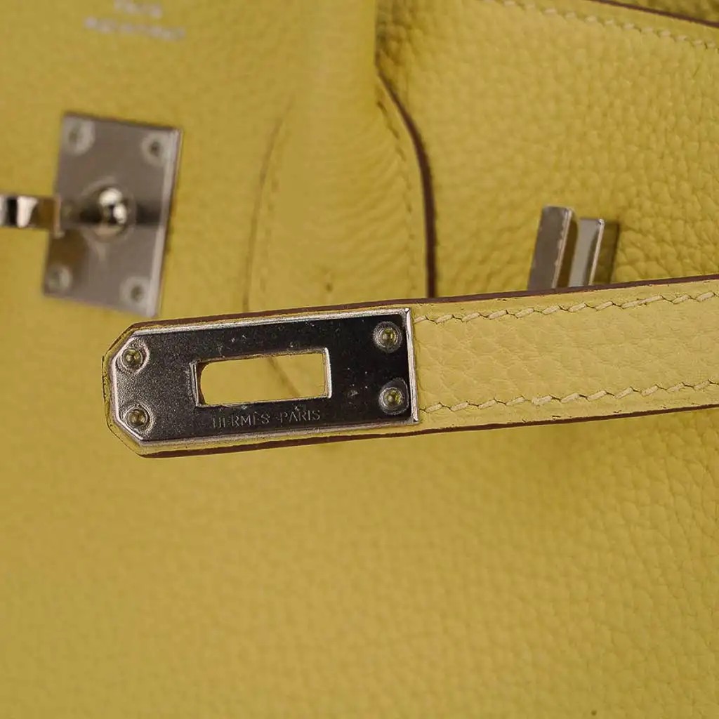 This gentle pale yellow is lovely twist on a neutral Hermes Birkin bag.