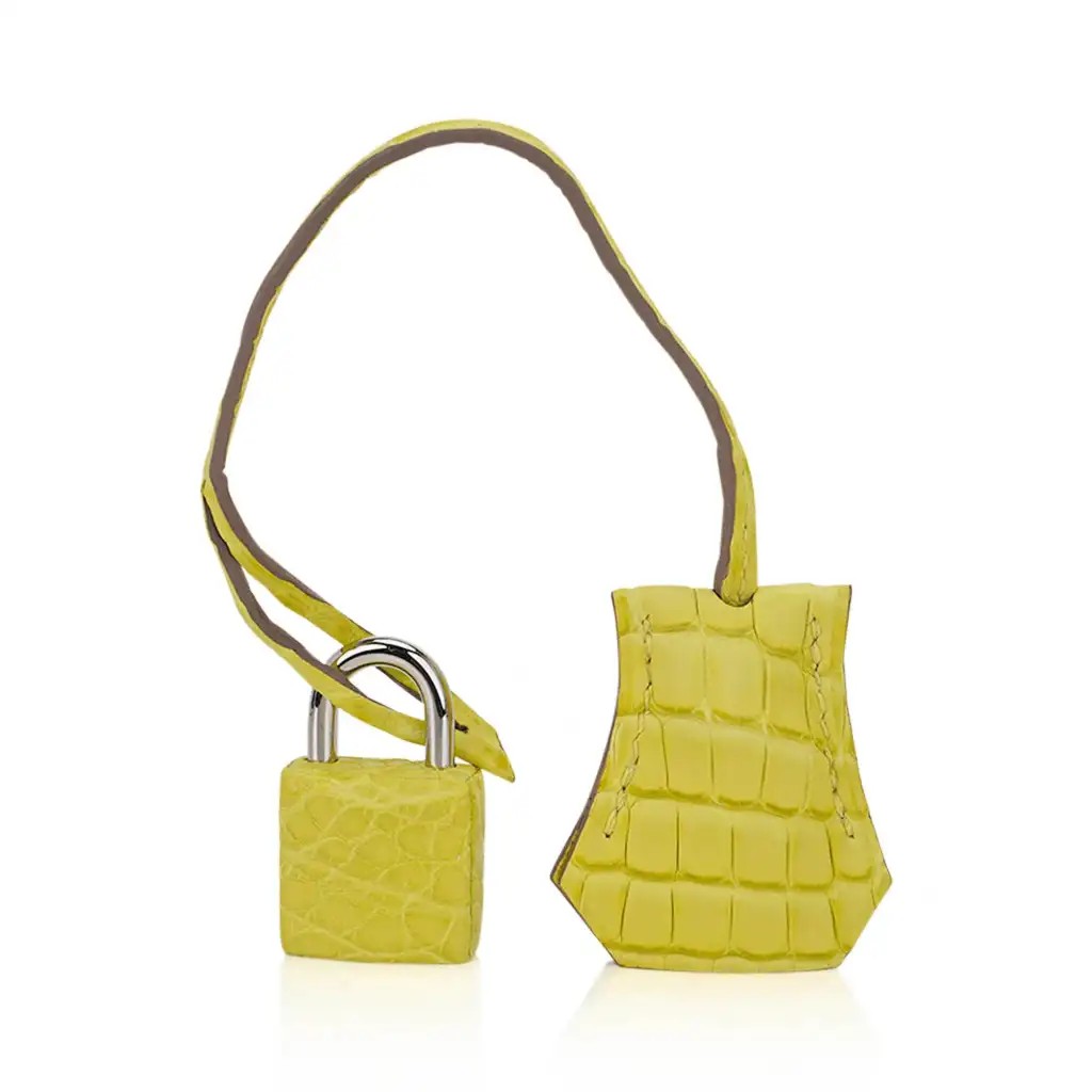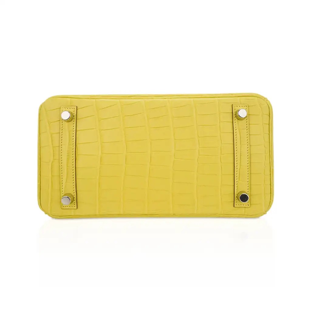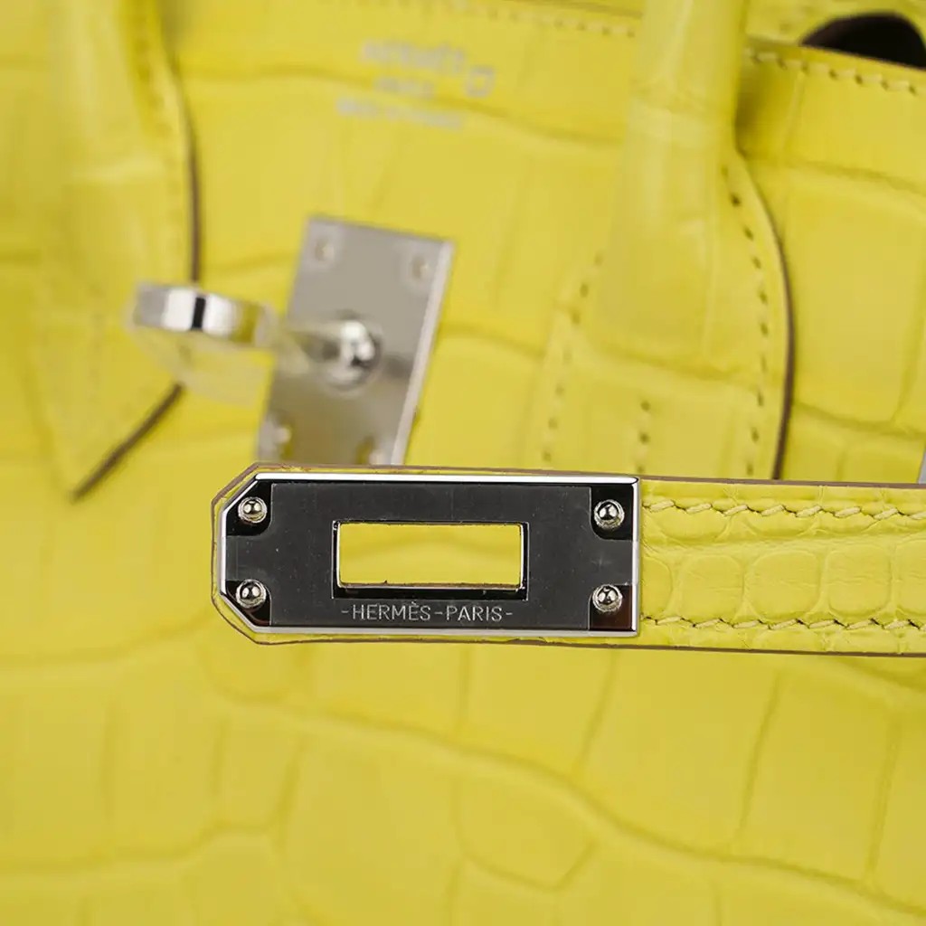 Guaranteed authentic Hermes Birkin 25 bag featured in Lime Matte Alligator.