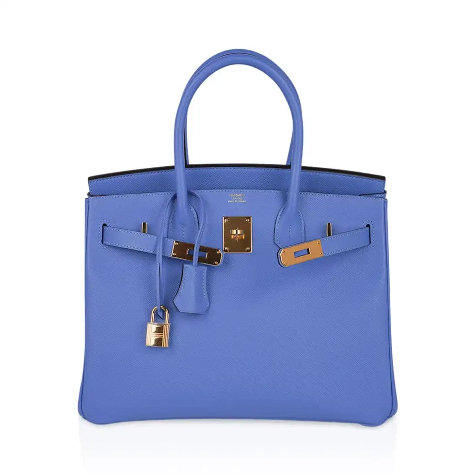 This no longer produced Blue Birkin bag will take you for year round wear.