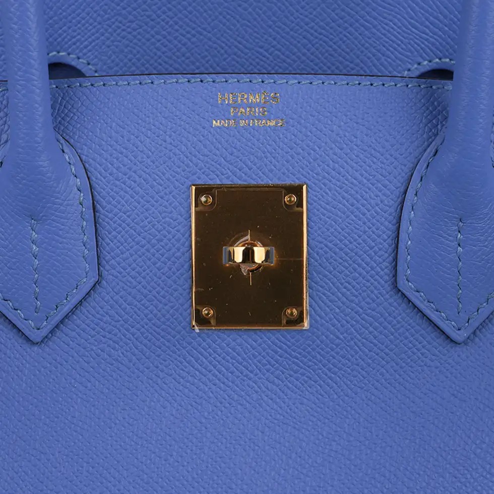 Beautiful neutral Bleu Paradis Hermes Birkin 30 bag is a rare find as the colour is retired.