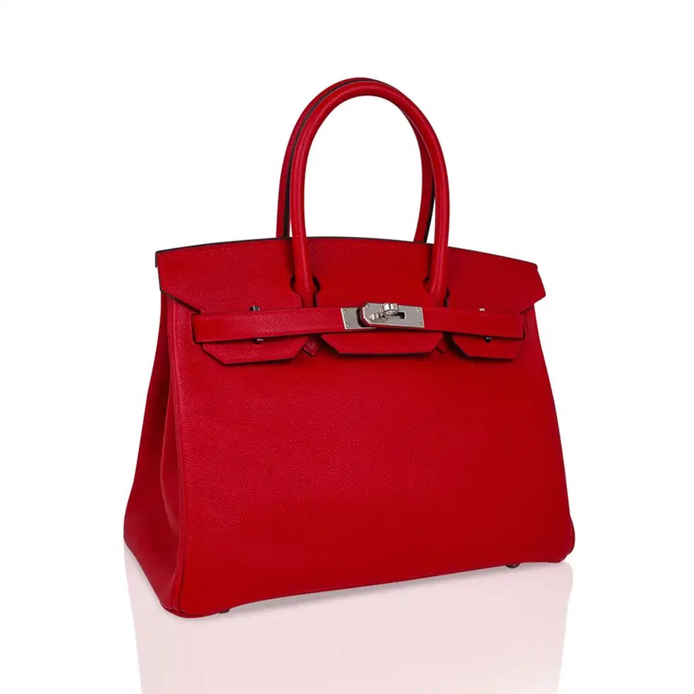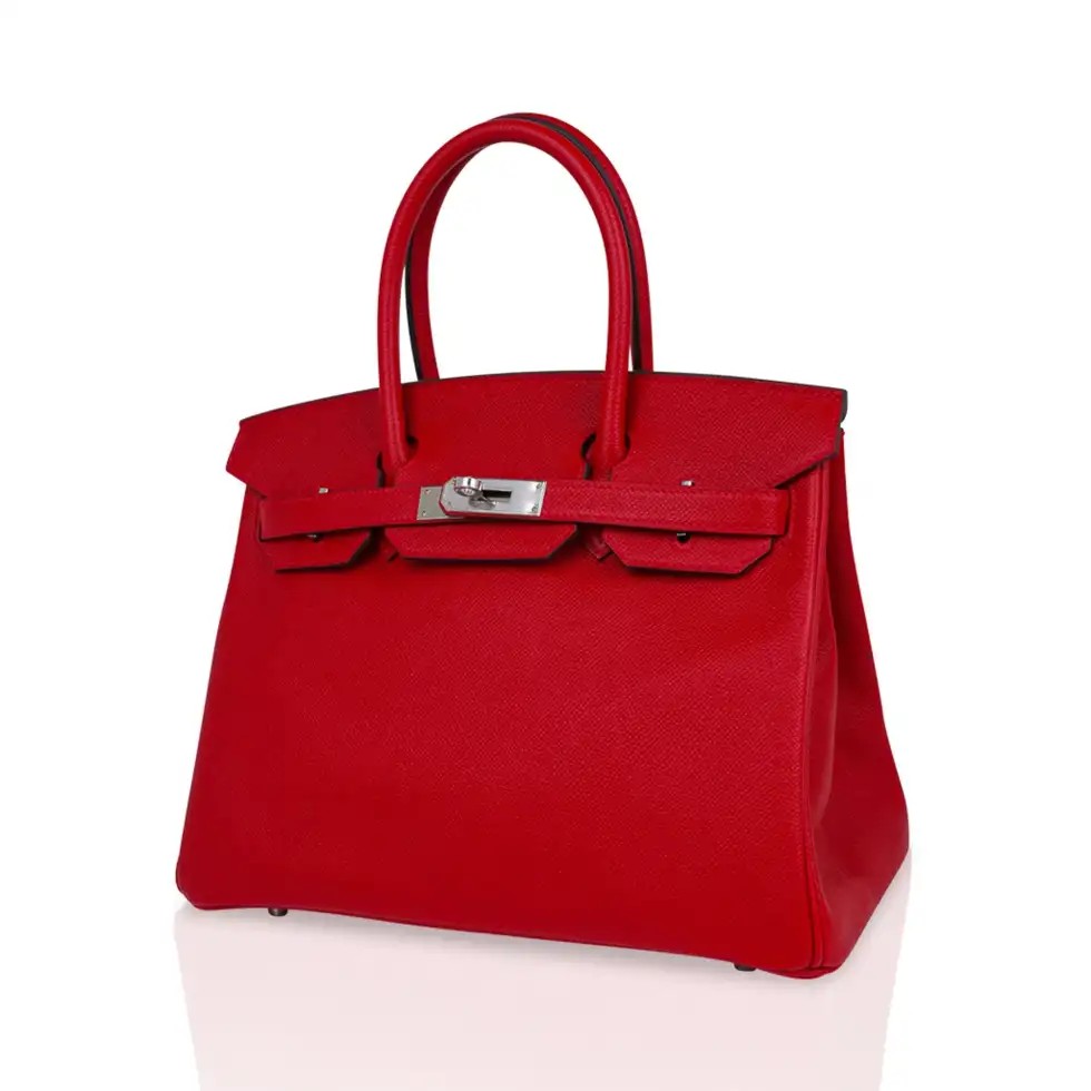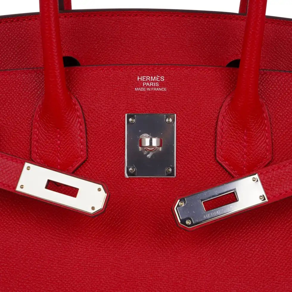 Guaranteed authentic Hermes Birkin 30 bag features lipstick red Rouge Casaque.