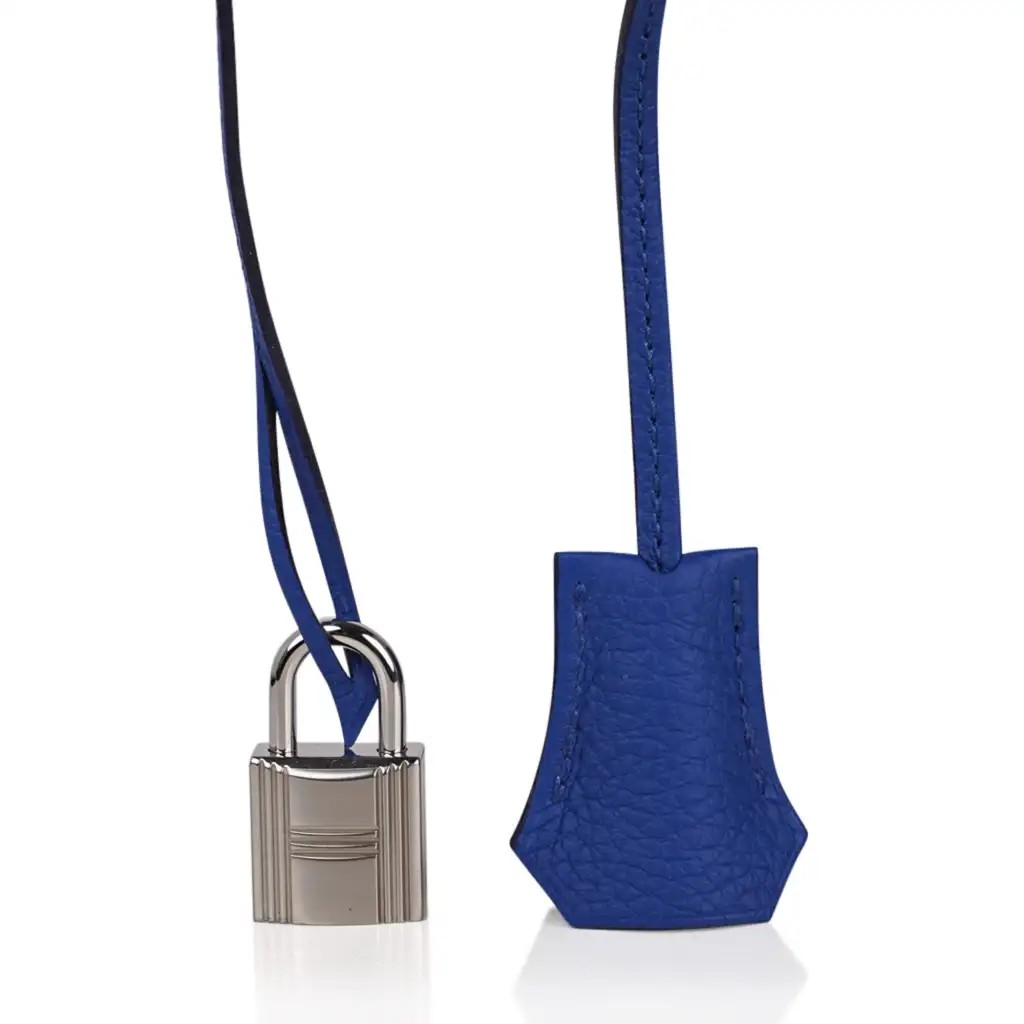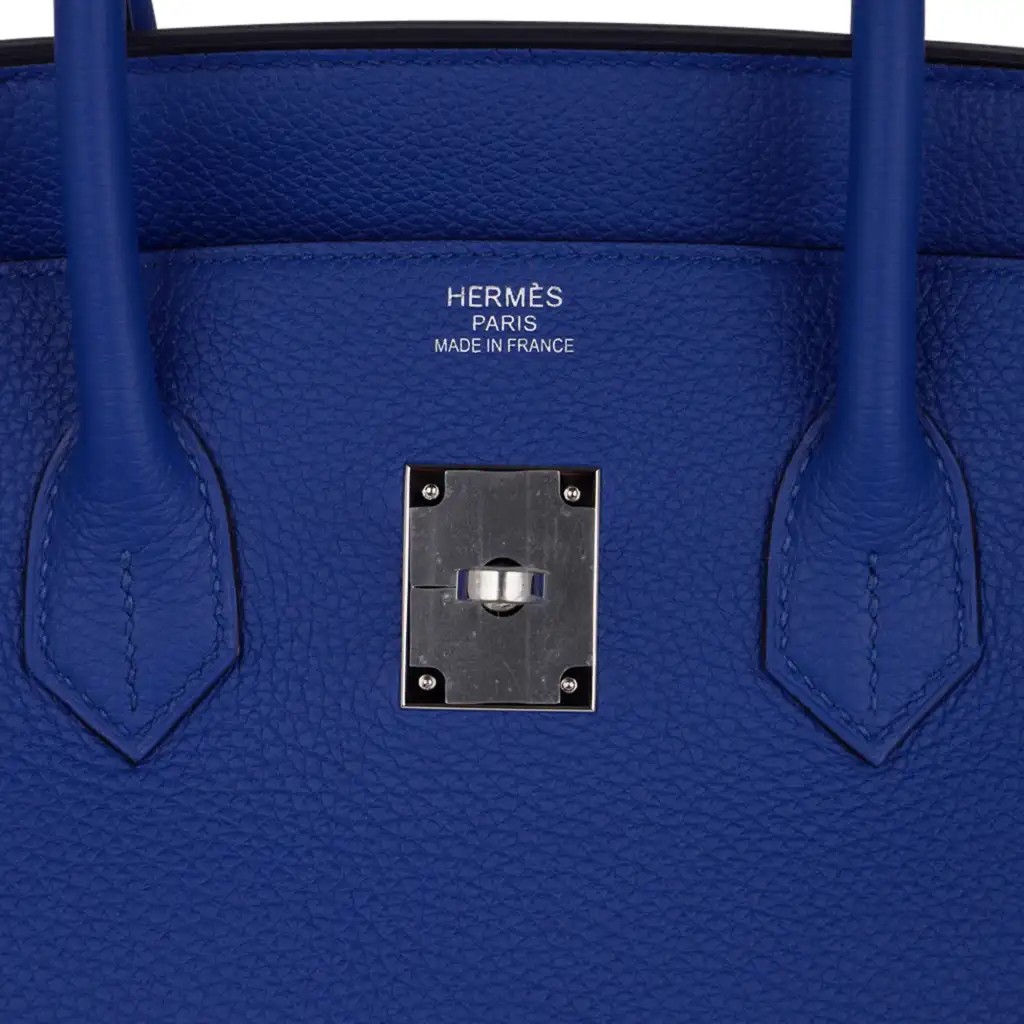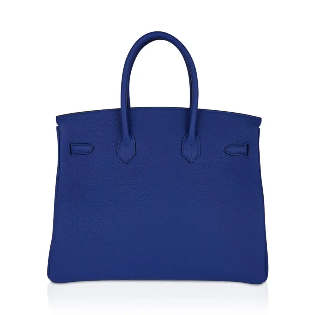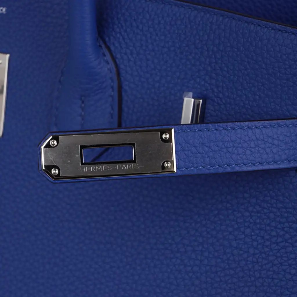 This blue Hermes Birkin bag is breathtaking in its richly saturated colour.