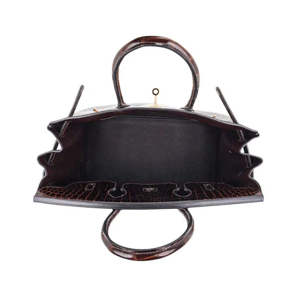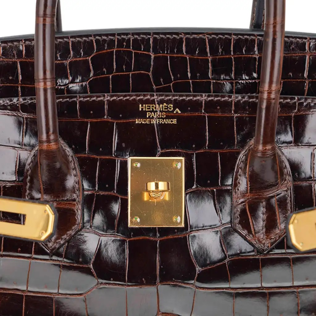 This Hermes crocodile Birkin bag is a deep brown and is stunning with every colour, including black.