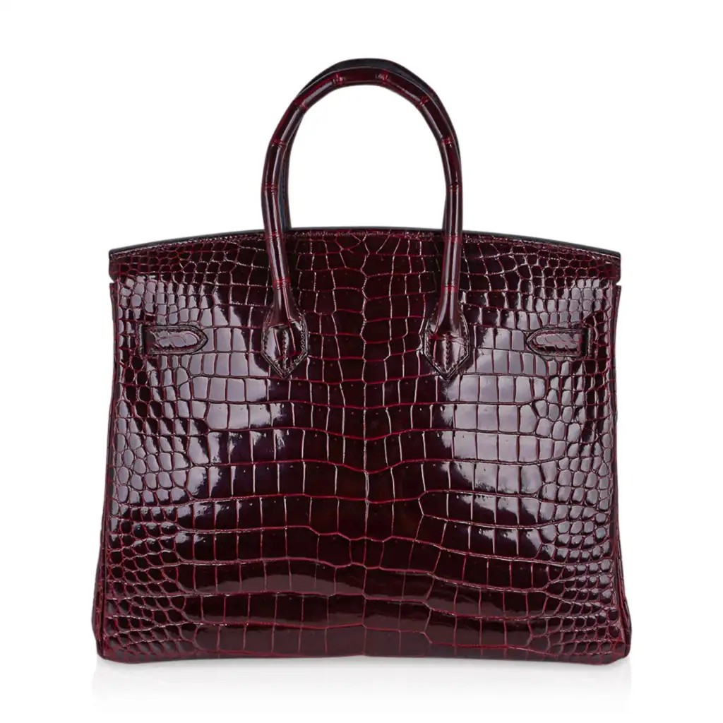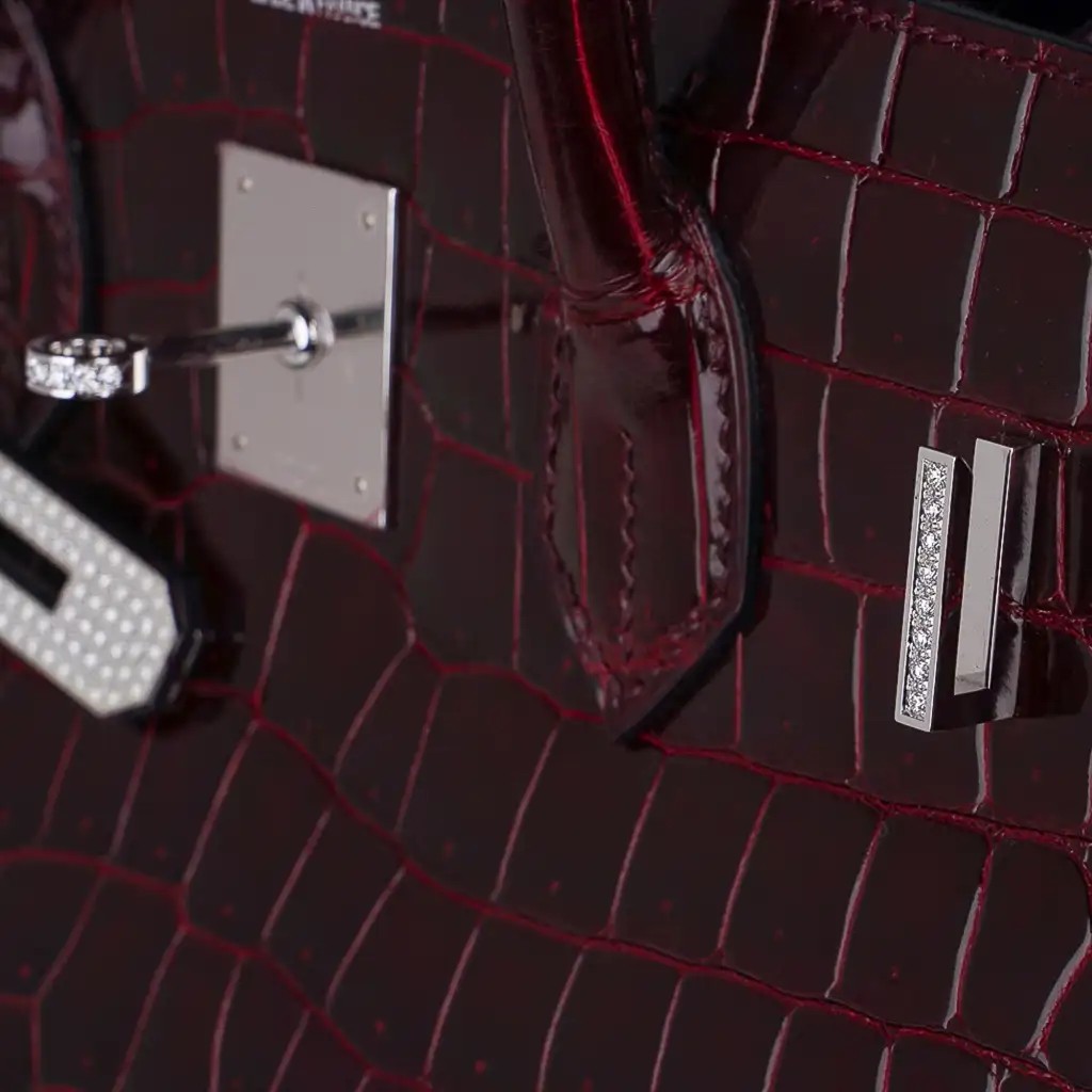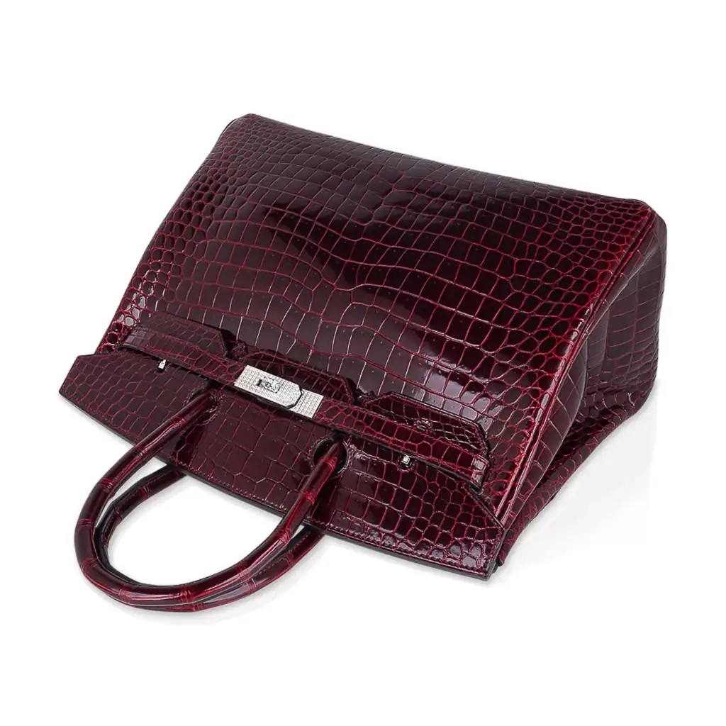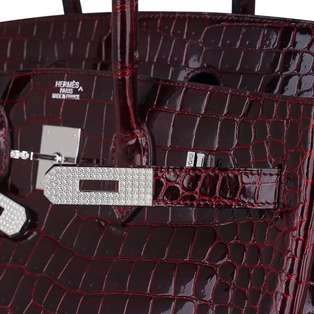 Hermes Birkin 35 Bag Diamond Bordeaux Porosus Crocodile with White Gold Hardware