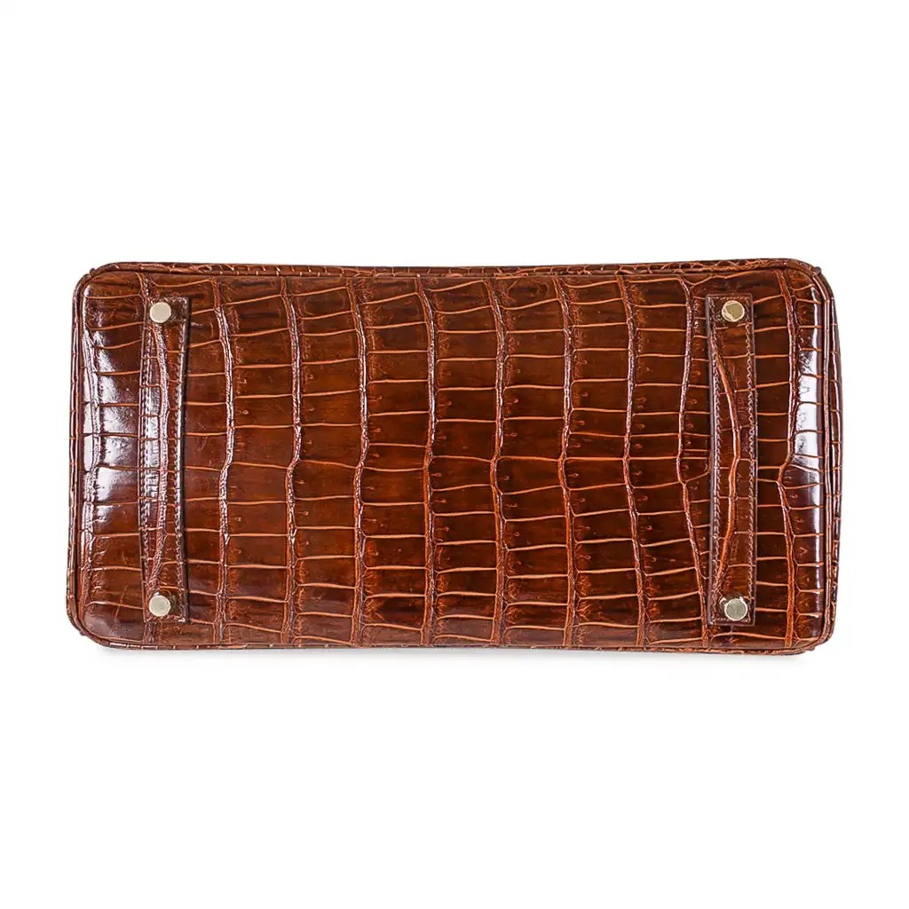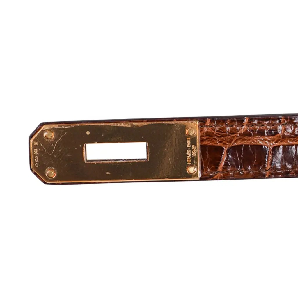 Guaranteed authentic exceptional Hermes Birkin 35 Diamond Porosus Crocodile bag featured in honeyed Miel.