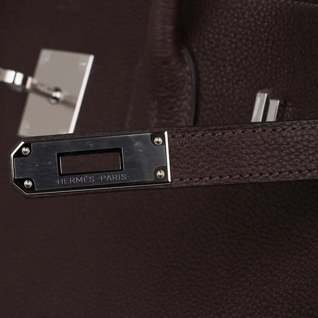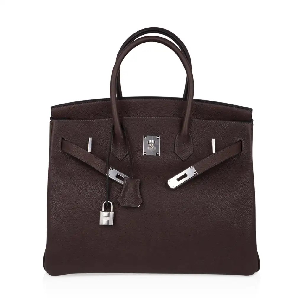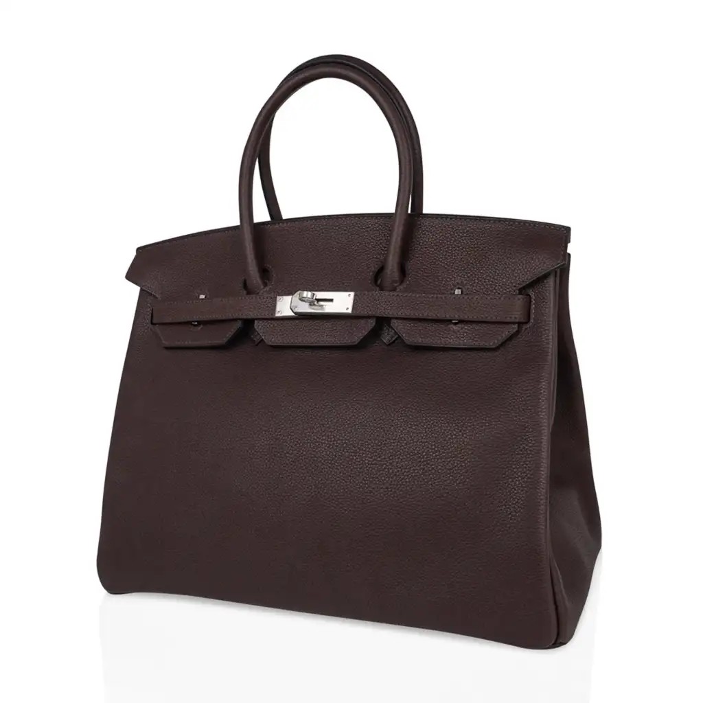 Guaranteed authentic Hermes 35 Birkin bag featured in very rare Ebene Barenia Faubourg.