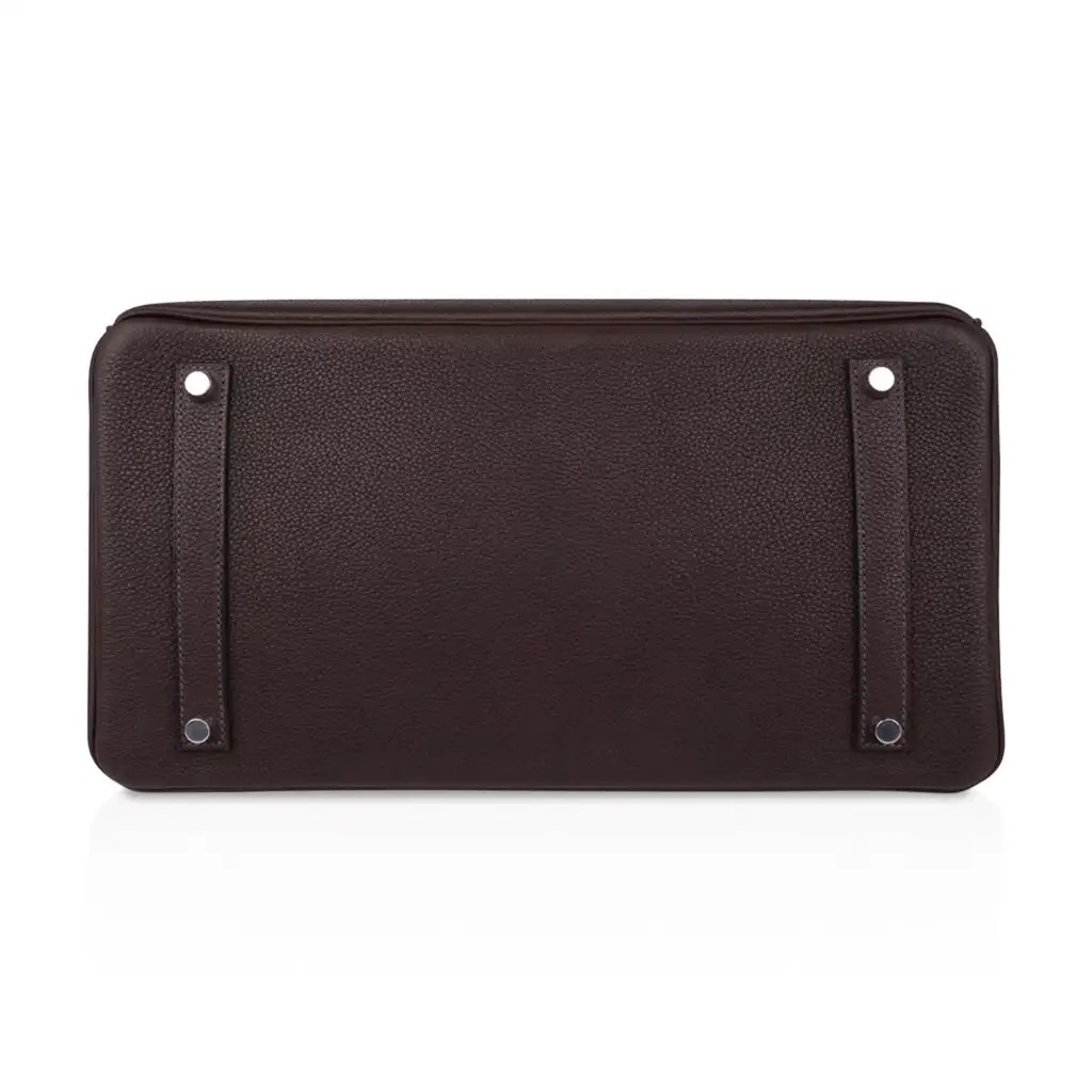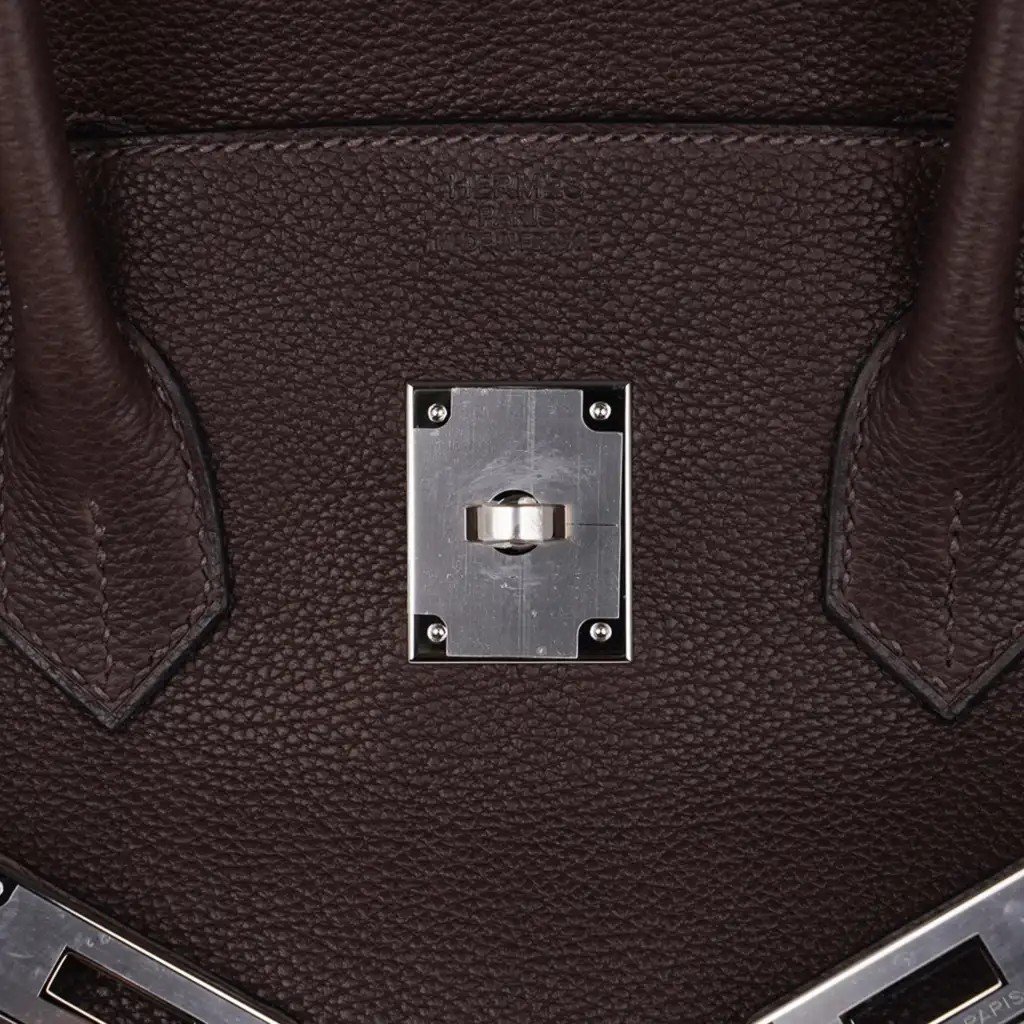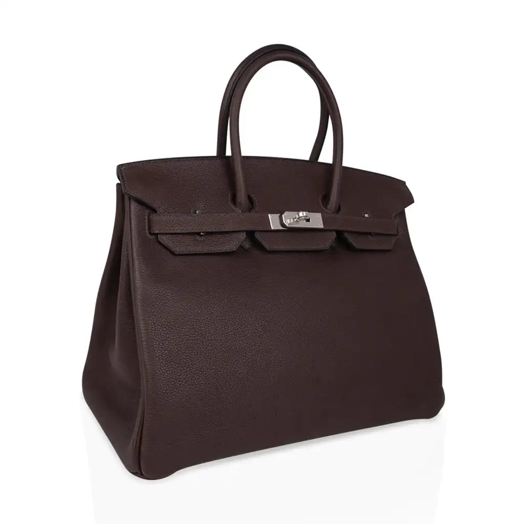 Guaranteed authentic Hermes 35 Birkin bag featured in very rare Ebene Barenia Faubourg.