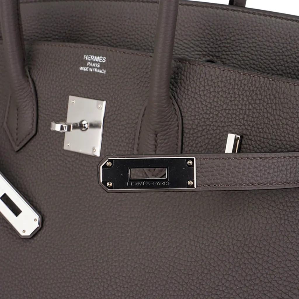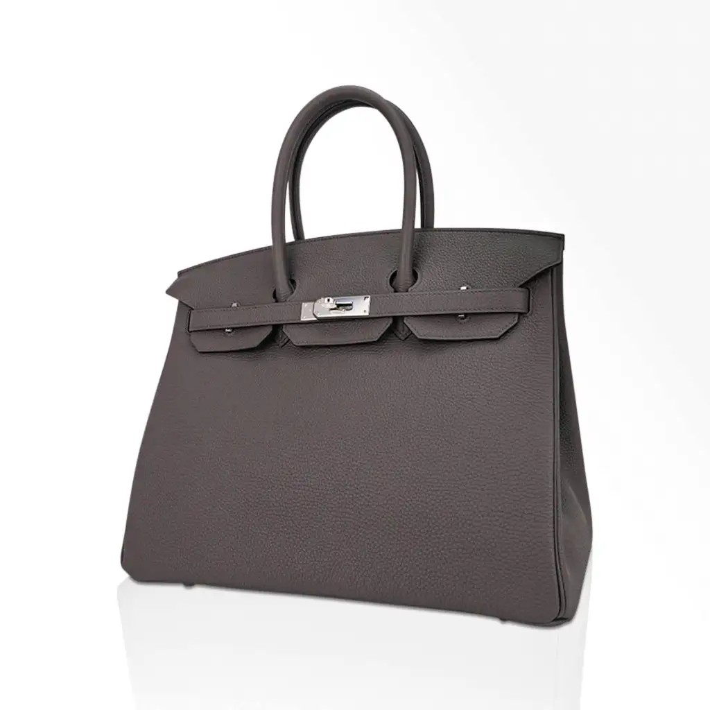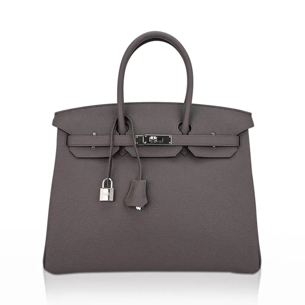 Guaranteed authentic Hermes Birkin 35 bag featured in Etain – the most perfect medium gray and is utterly neutral.