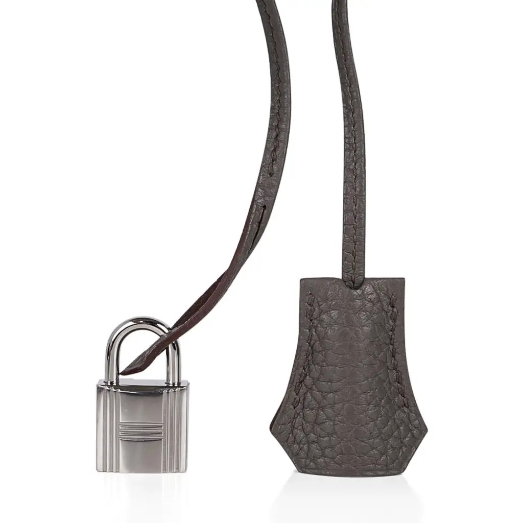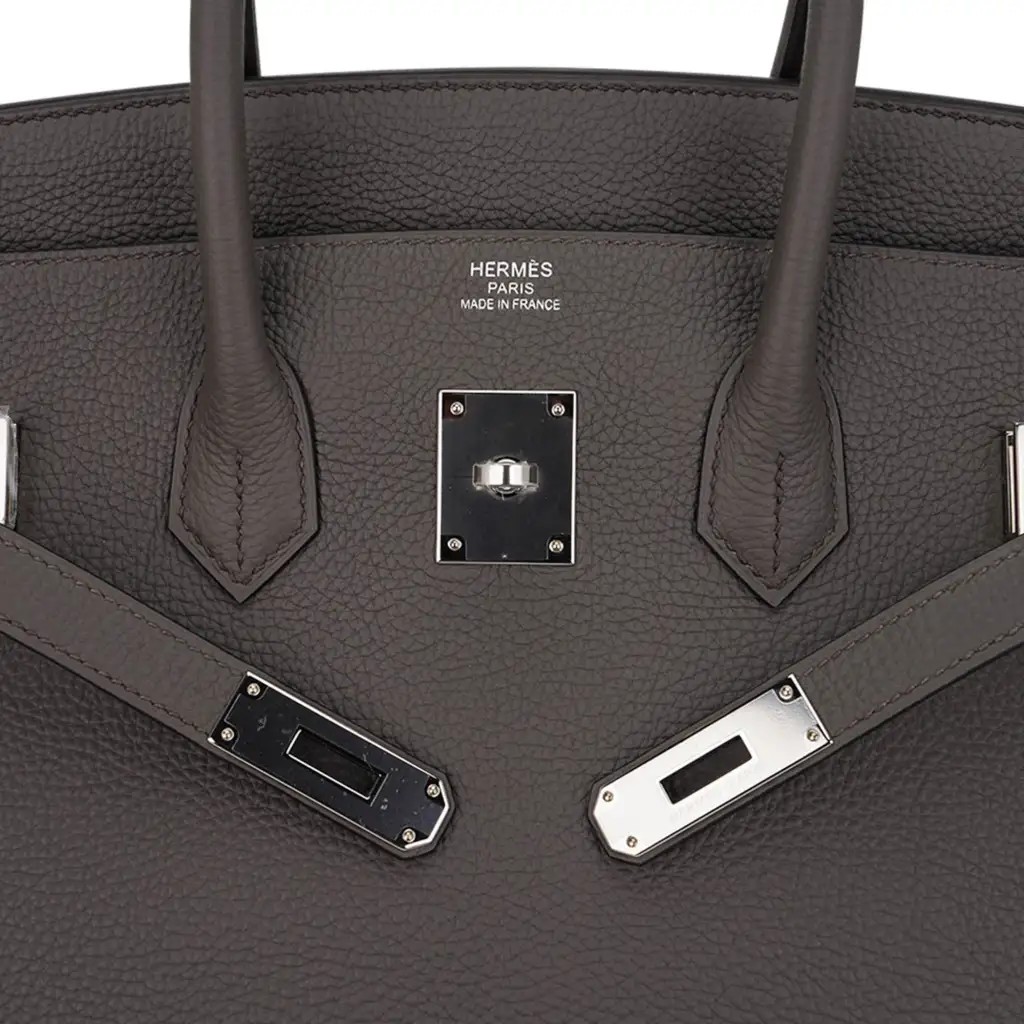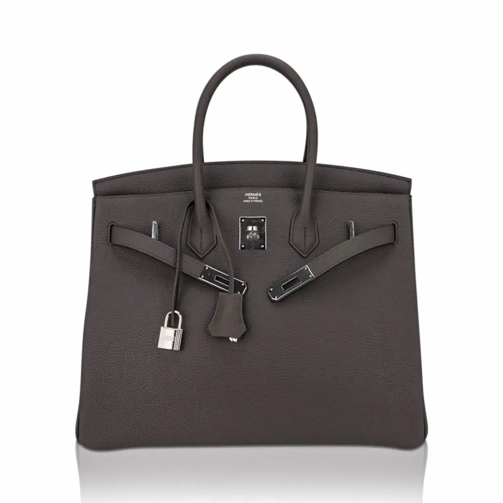 This beautiful gray Birkin bag is a classic addition to any Hermes handbag collection.