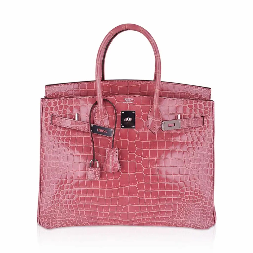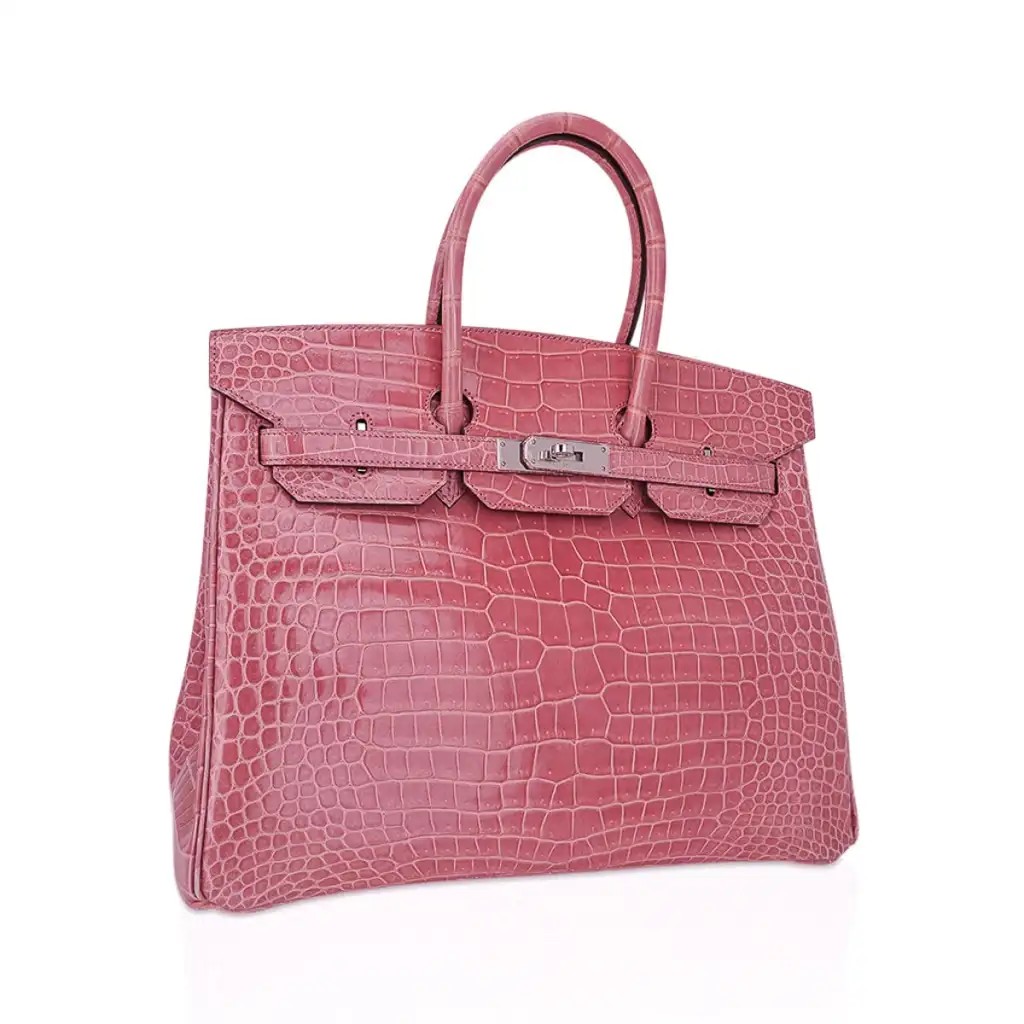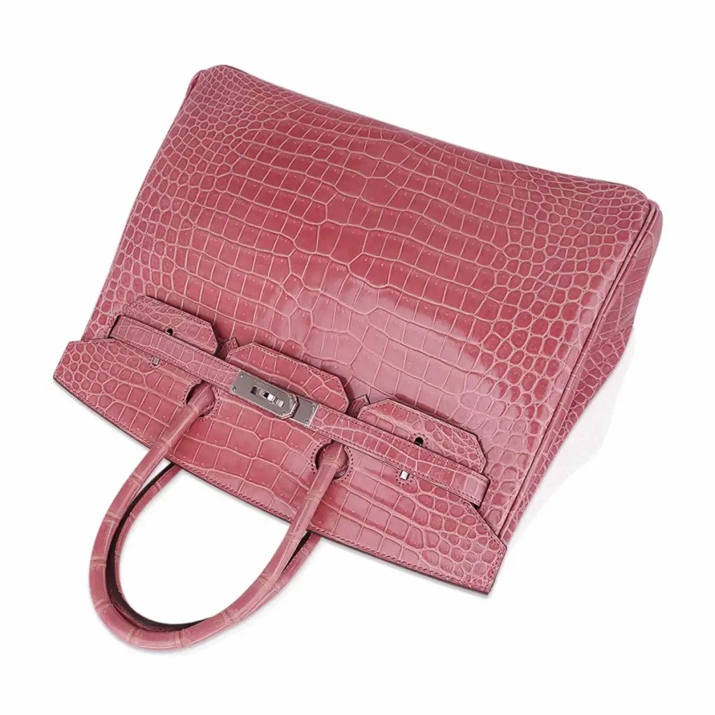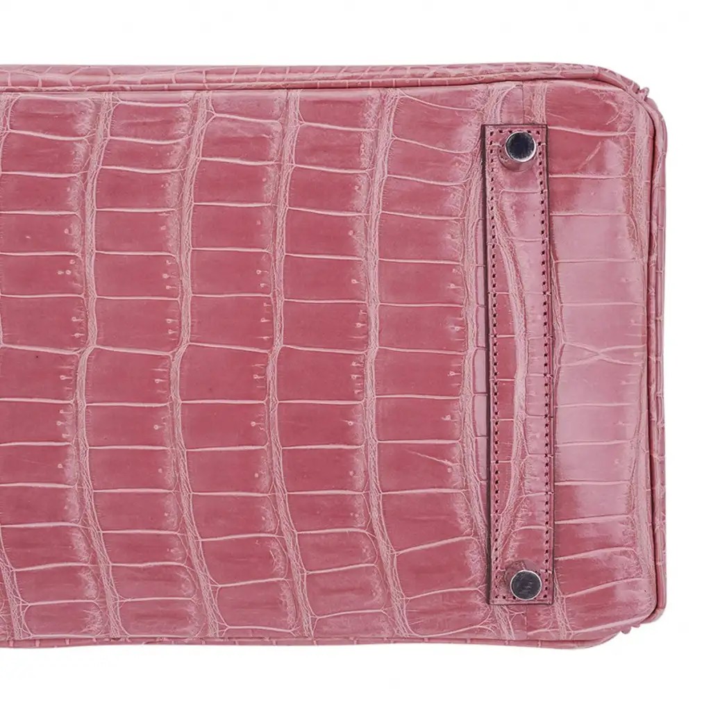 Guaranteed authentic Hermes Birkin 35 bag in uber rare Rose Indien Porosus Crocodile.
