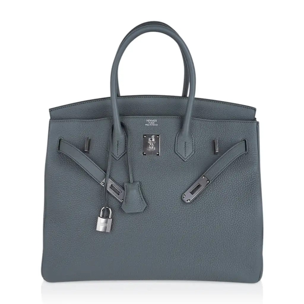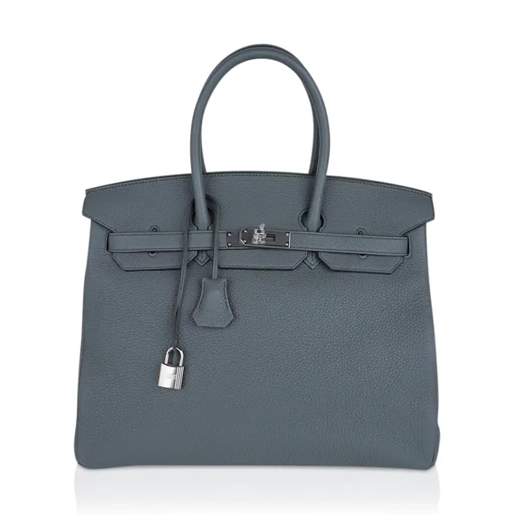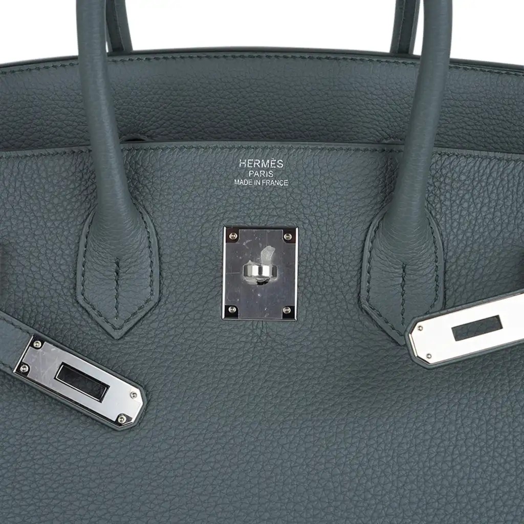 A beautiful muted green-gray-tone makes this a fabulous neutral Birkin bag.