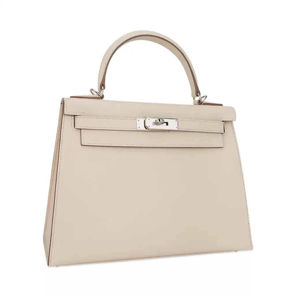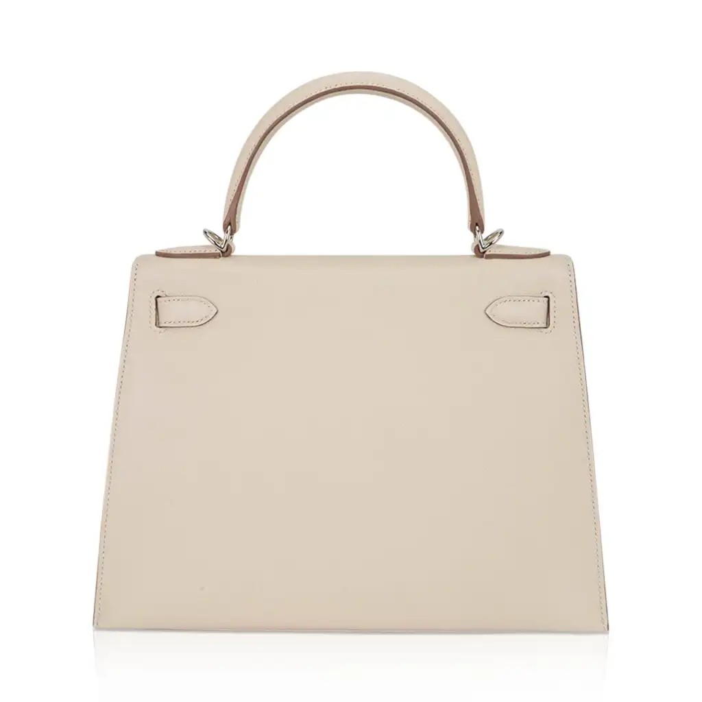 Guaranteed authentic Hermes Kelly Sellier 28 feature in coveted Craie.