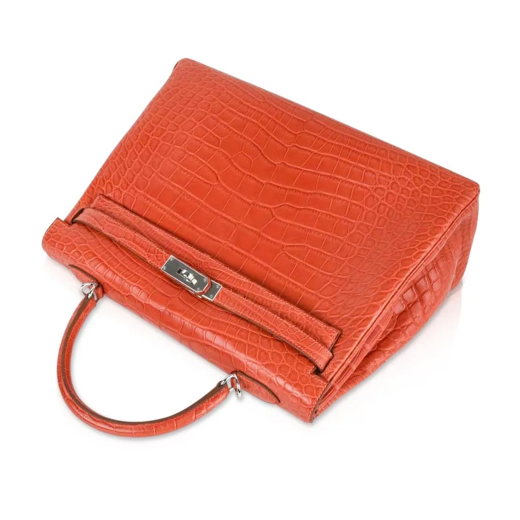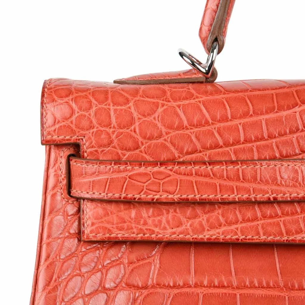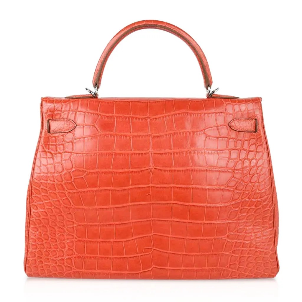 Hermes Kelly 35 Retourne Bag Sanguine Matte Alligator with Palladium Hardware