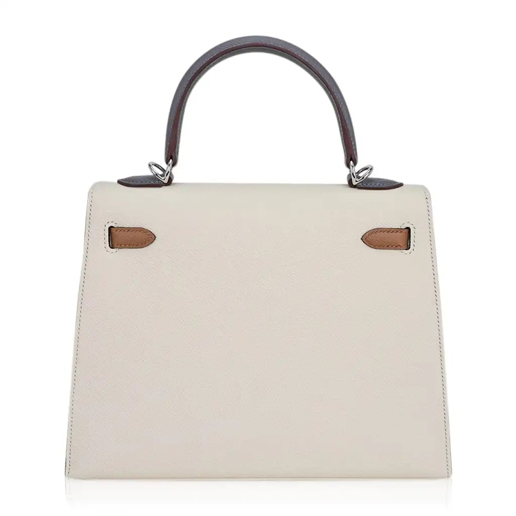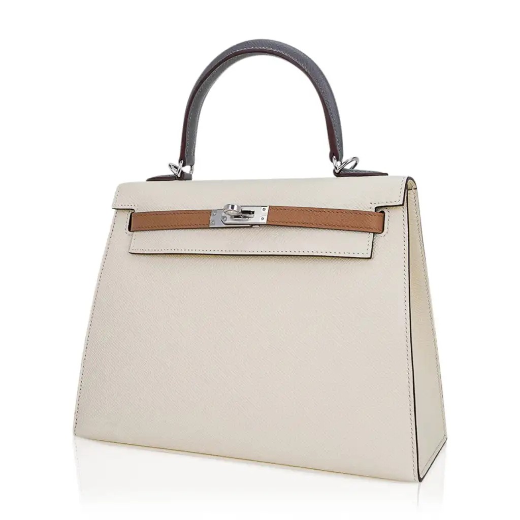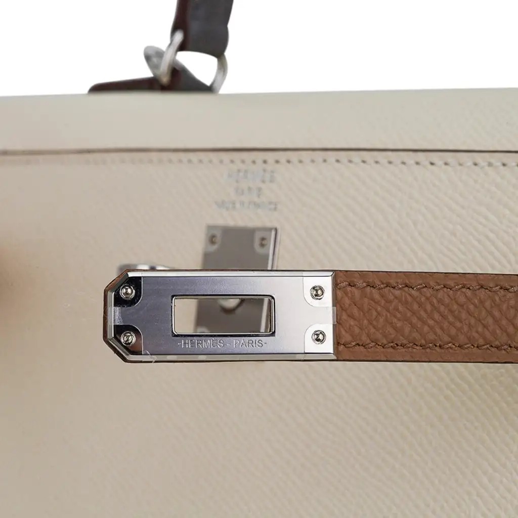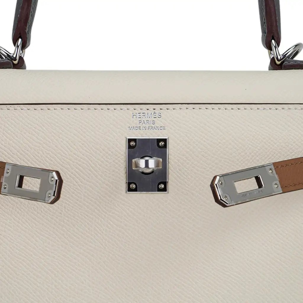 Hermes Kelly Sellier 25 Bag Nata, Chai & Gris Meyer Epsom Leather with Palladium Hardware