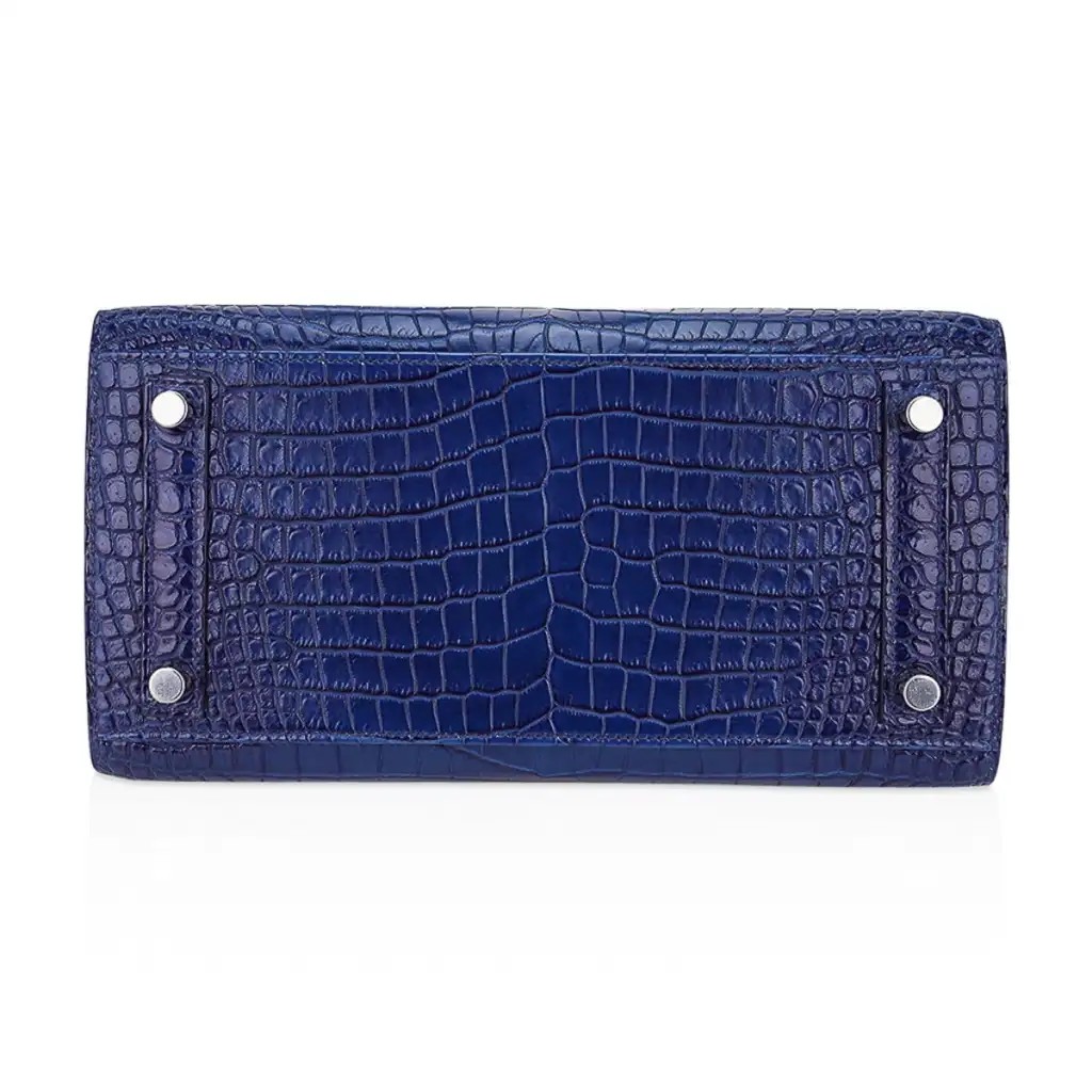 Guaranteed authentic Hermes Birkin Sellier 25 bag featured in Indigo Aizome matte Porosus crocodile.
