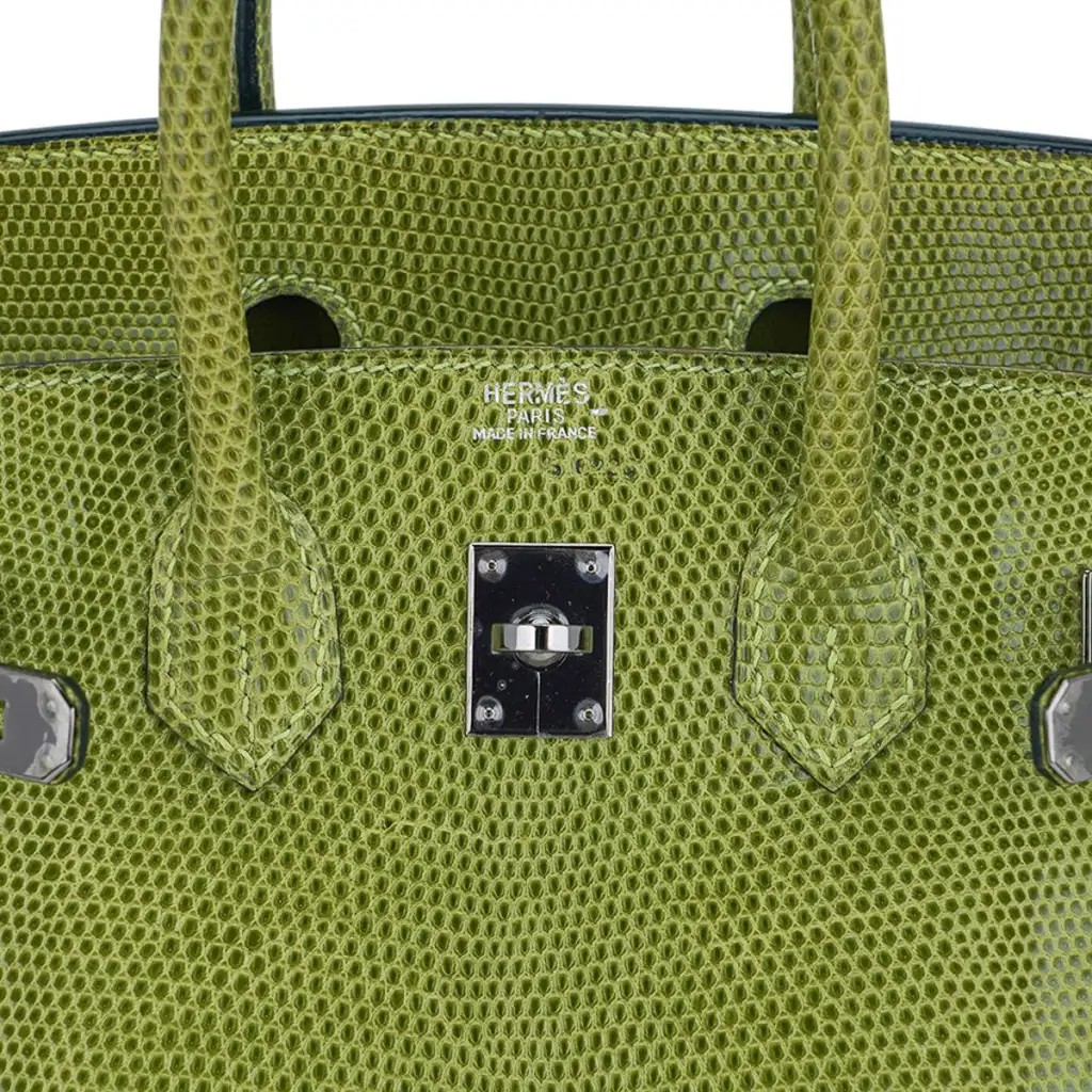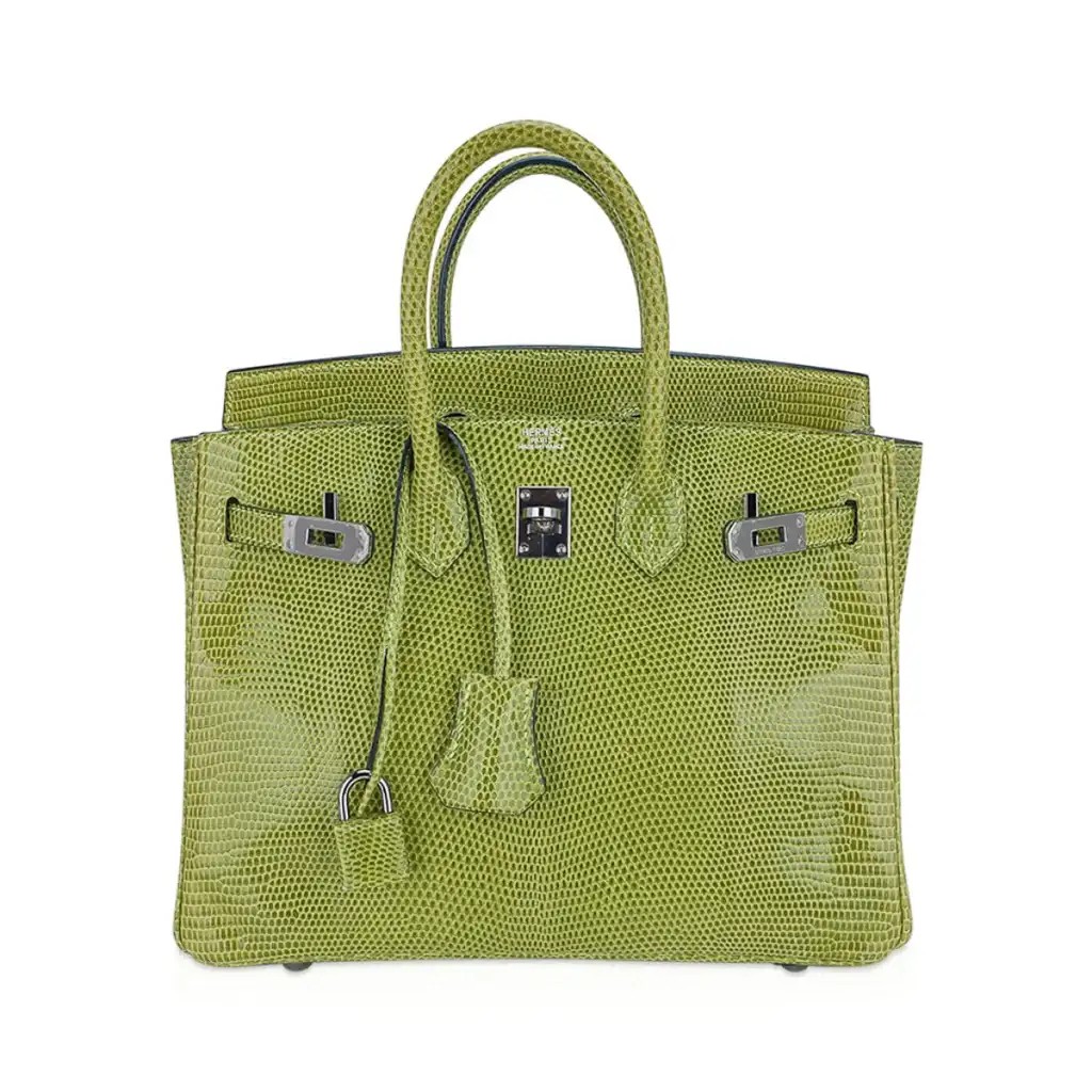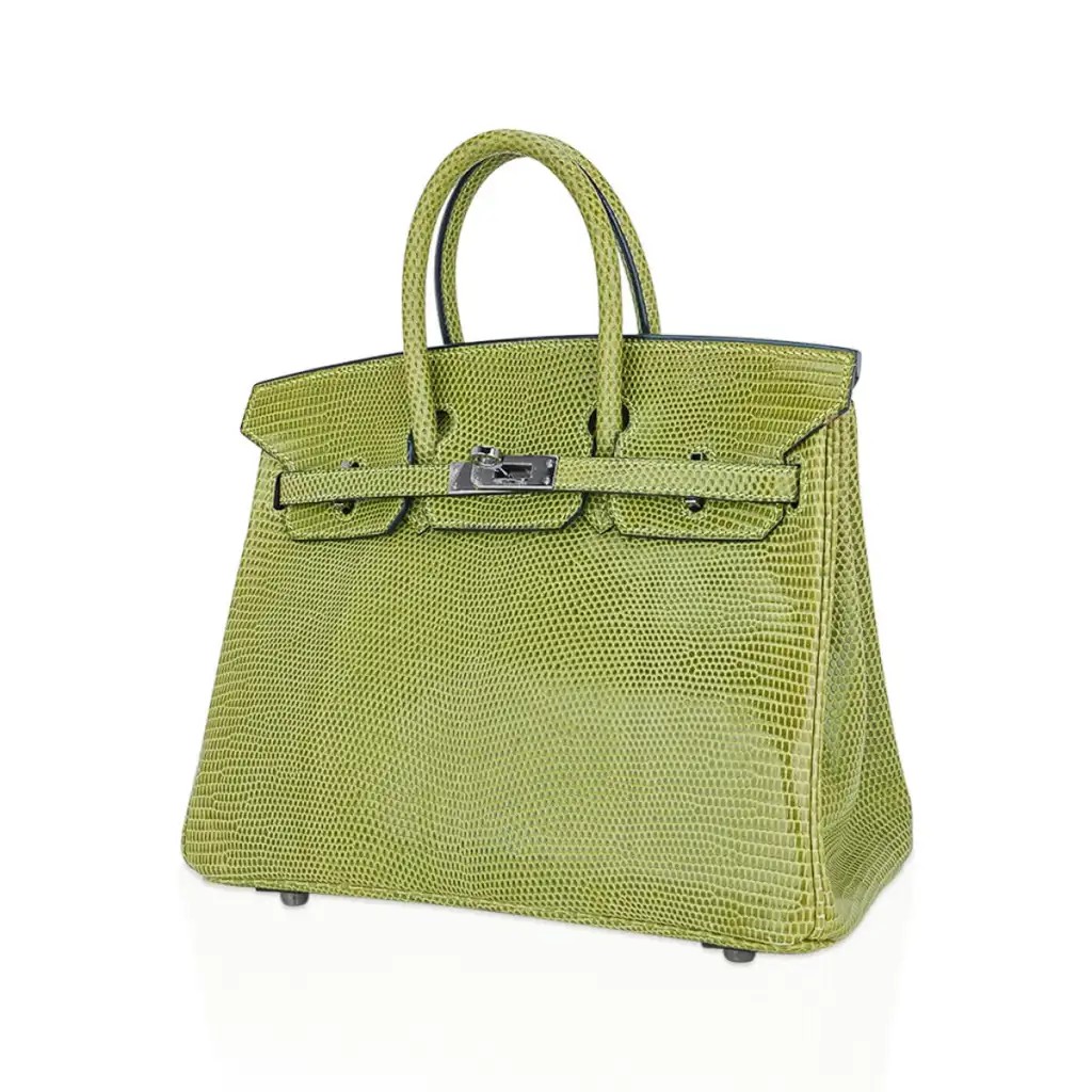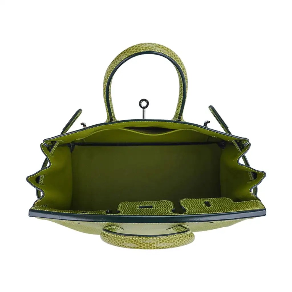 Hermes Limited Edition Birkin 25 Bag Vert Anis Lizard with Palladium Hardware
