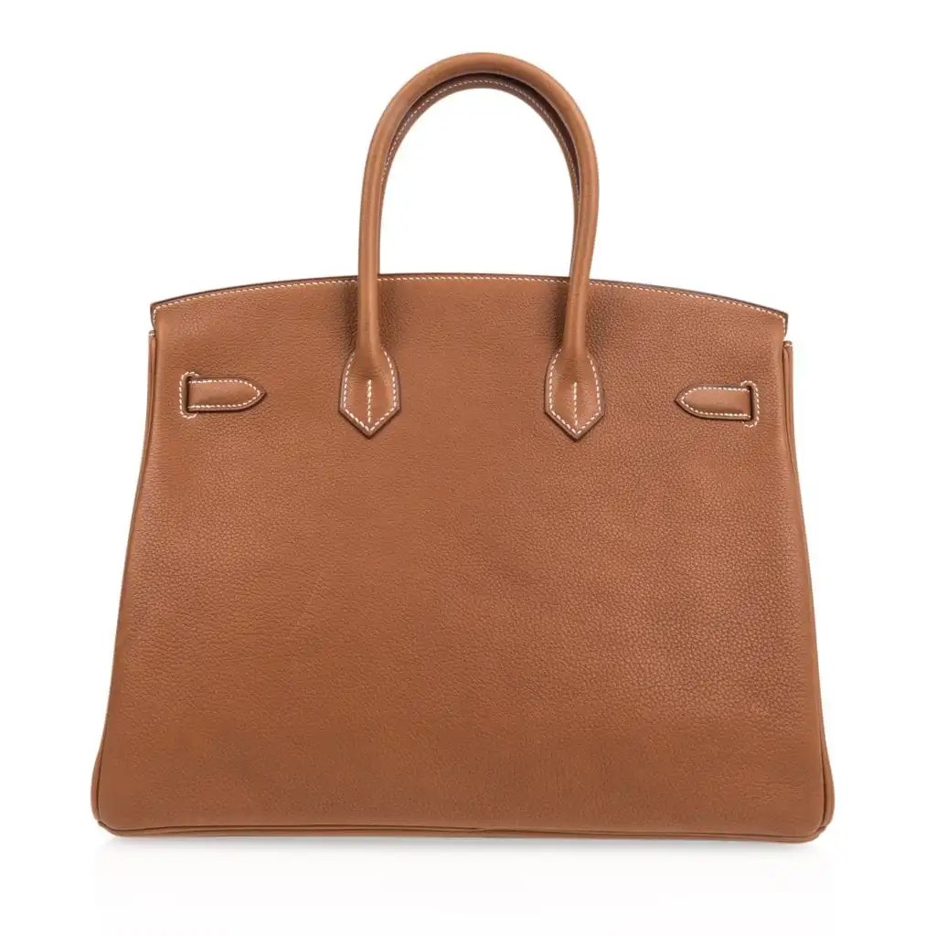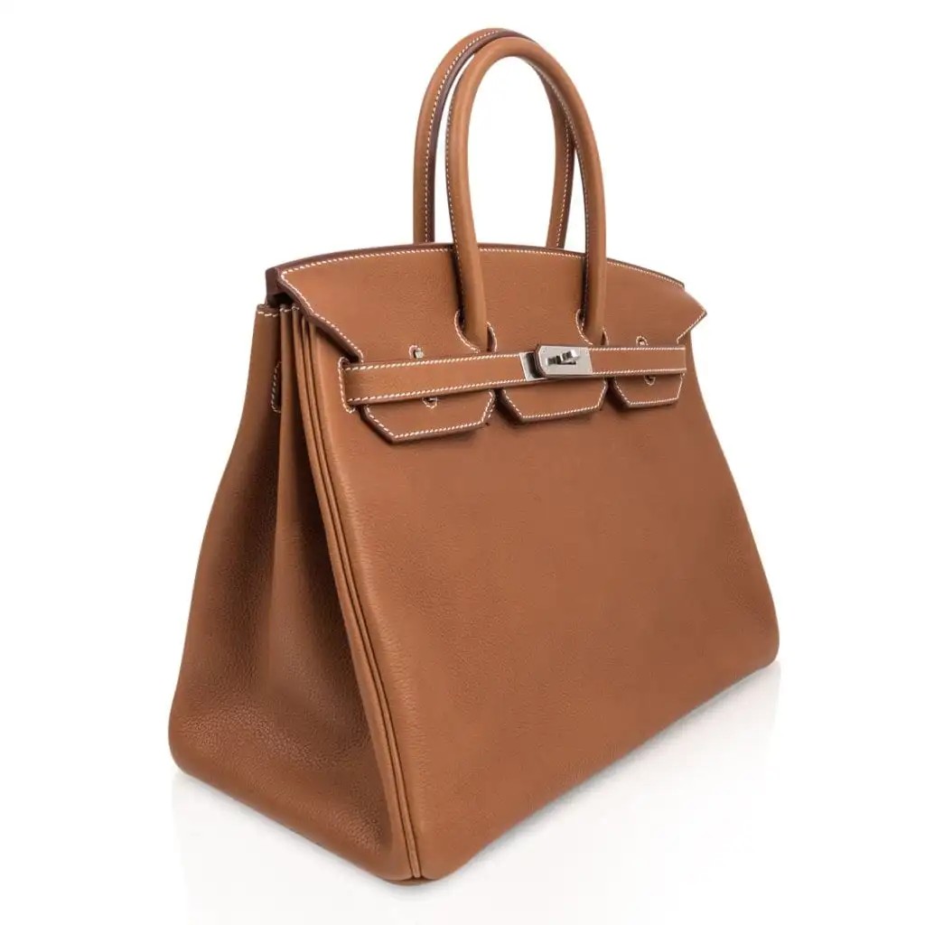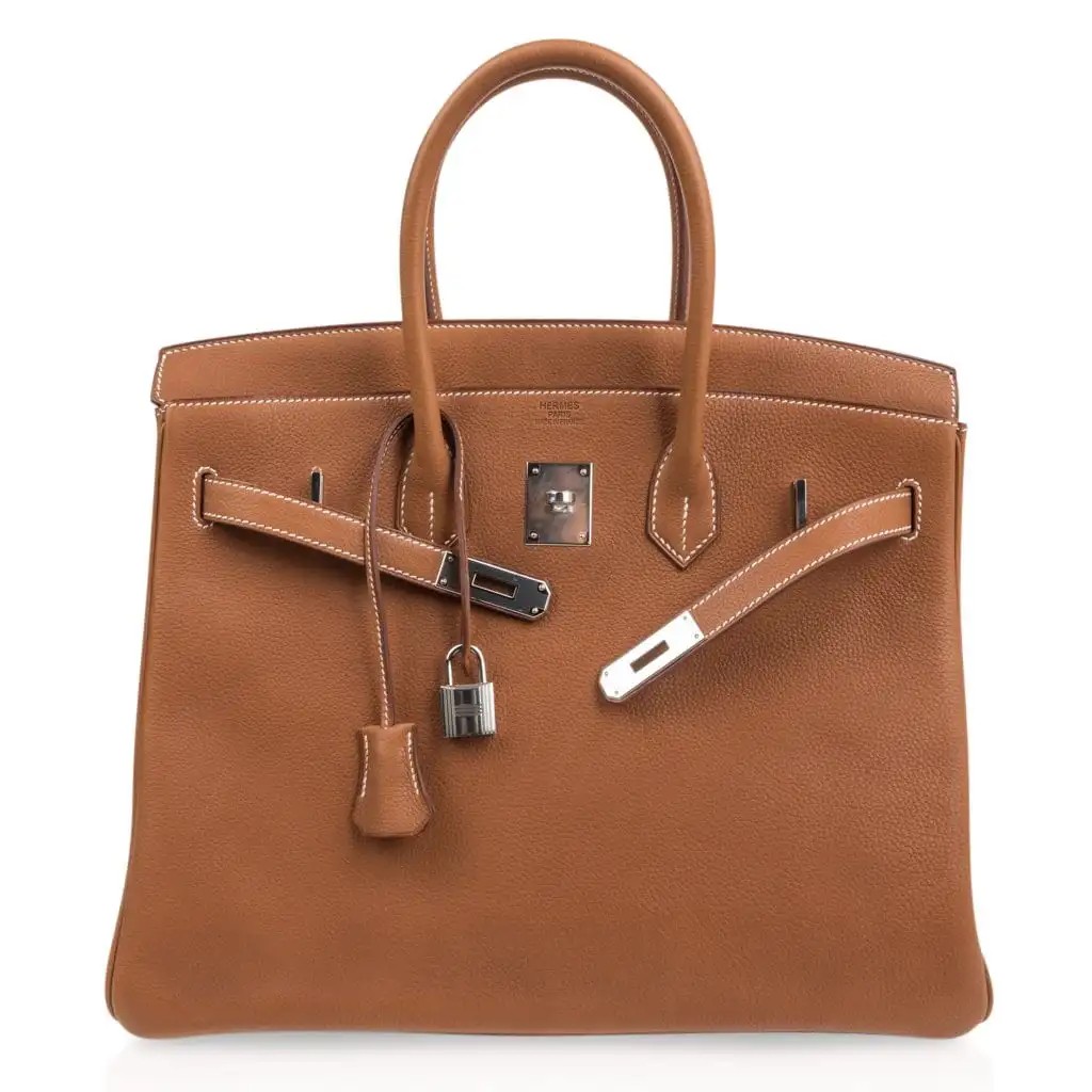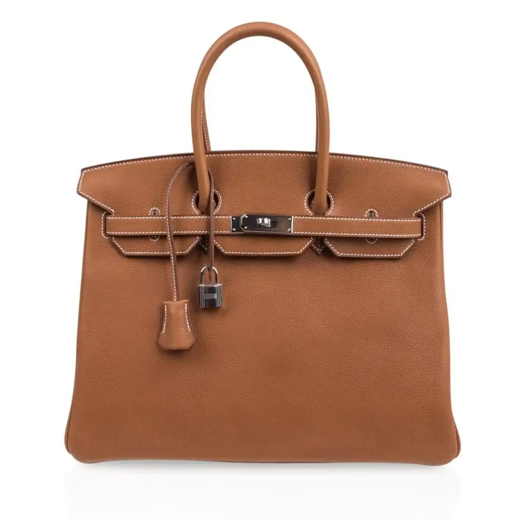 Rare Hermes 35 Birkin bag features in Fauve Barenia Faubourg.