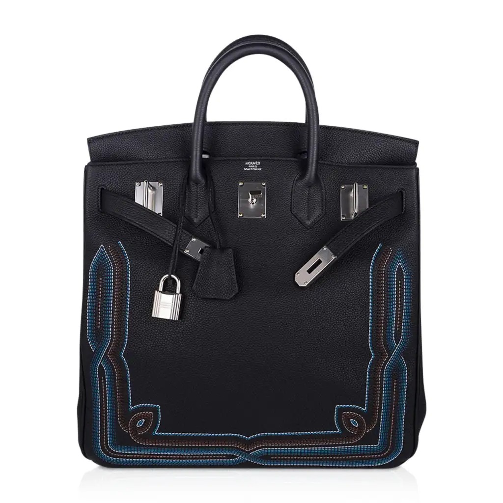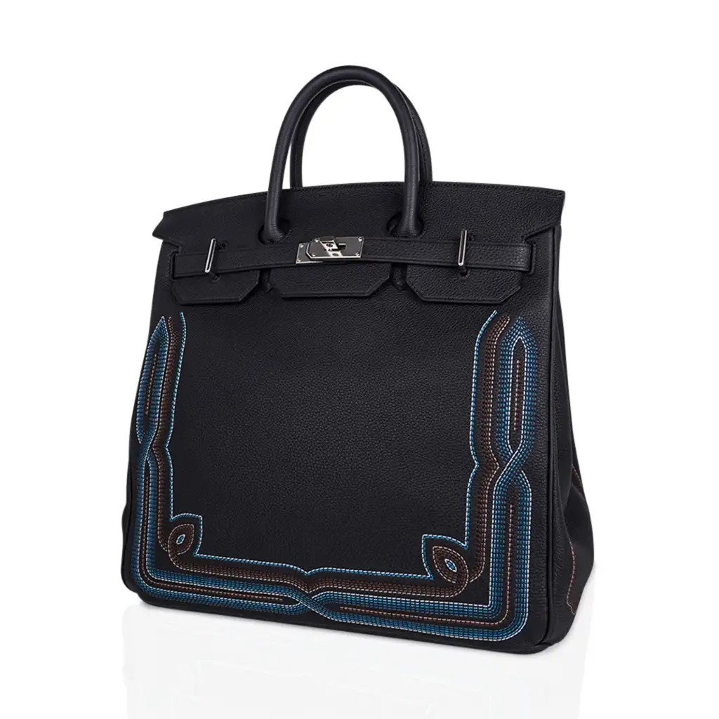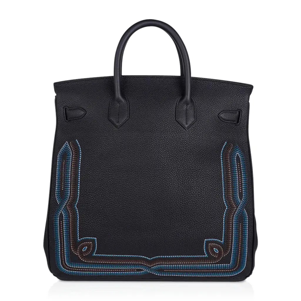 Hermes Limited Edition HAC Birkin 40 Bag Runway Embroidered Black Togo Leather with Palladium Hardware