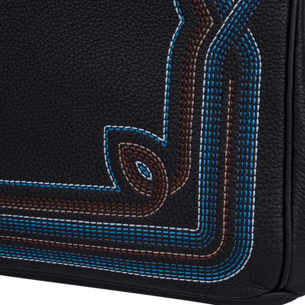 Black Togo leather accentuates the Blue and Camel western influenced embroidery in the front and rear..