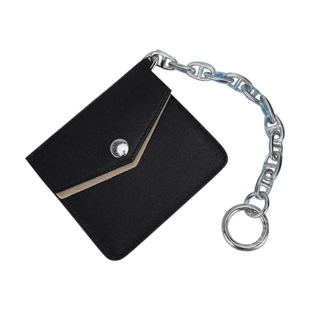 Inside the bag has a detachable fastened pocket on a key chain and is lined in black chevre leather.