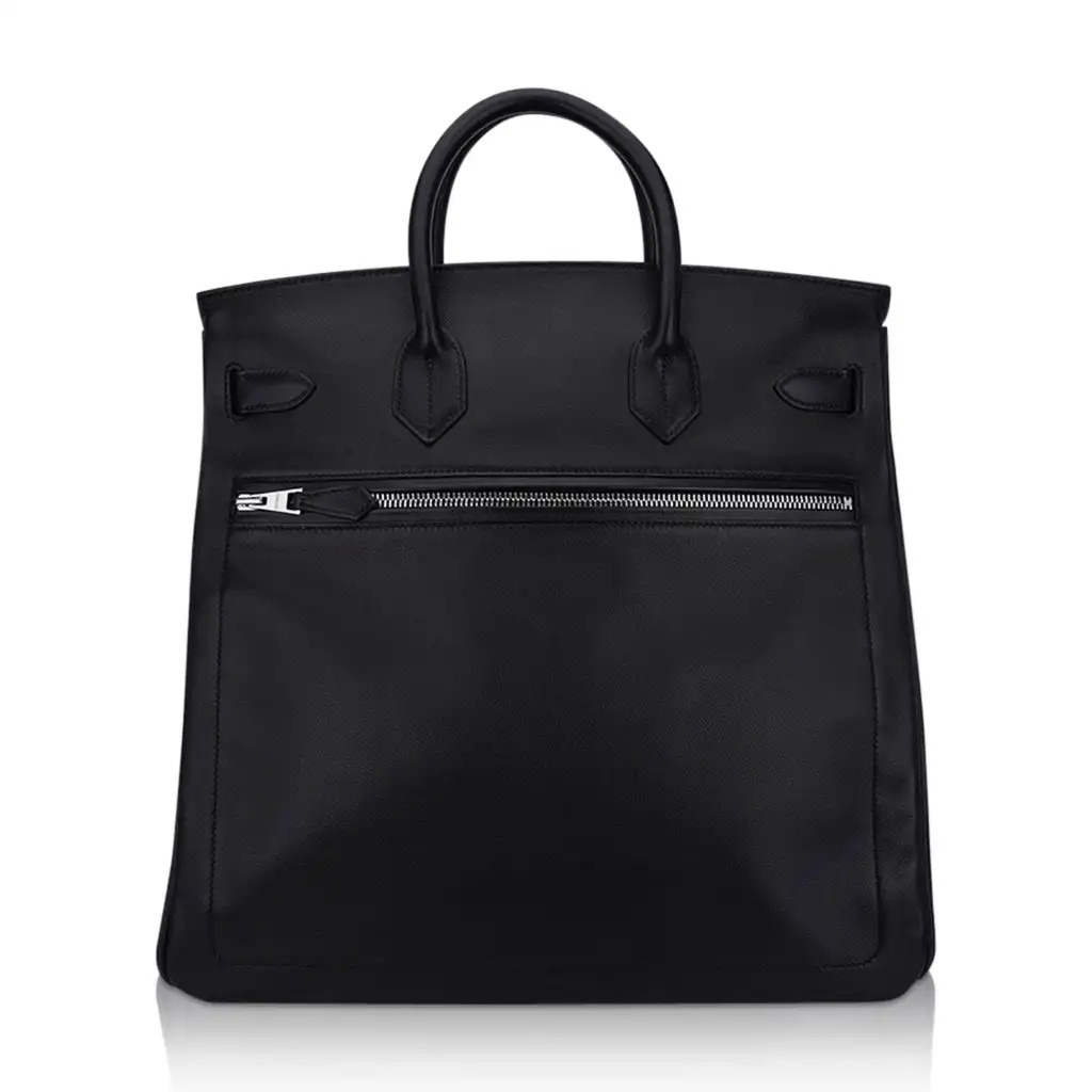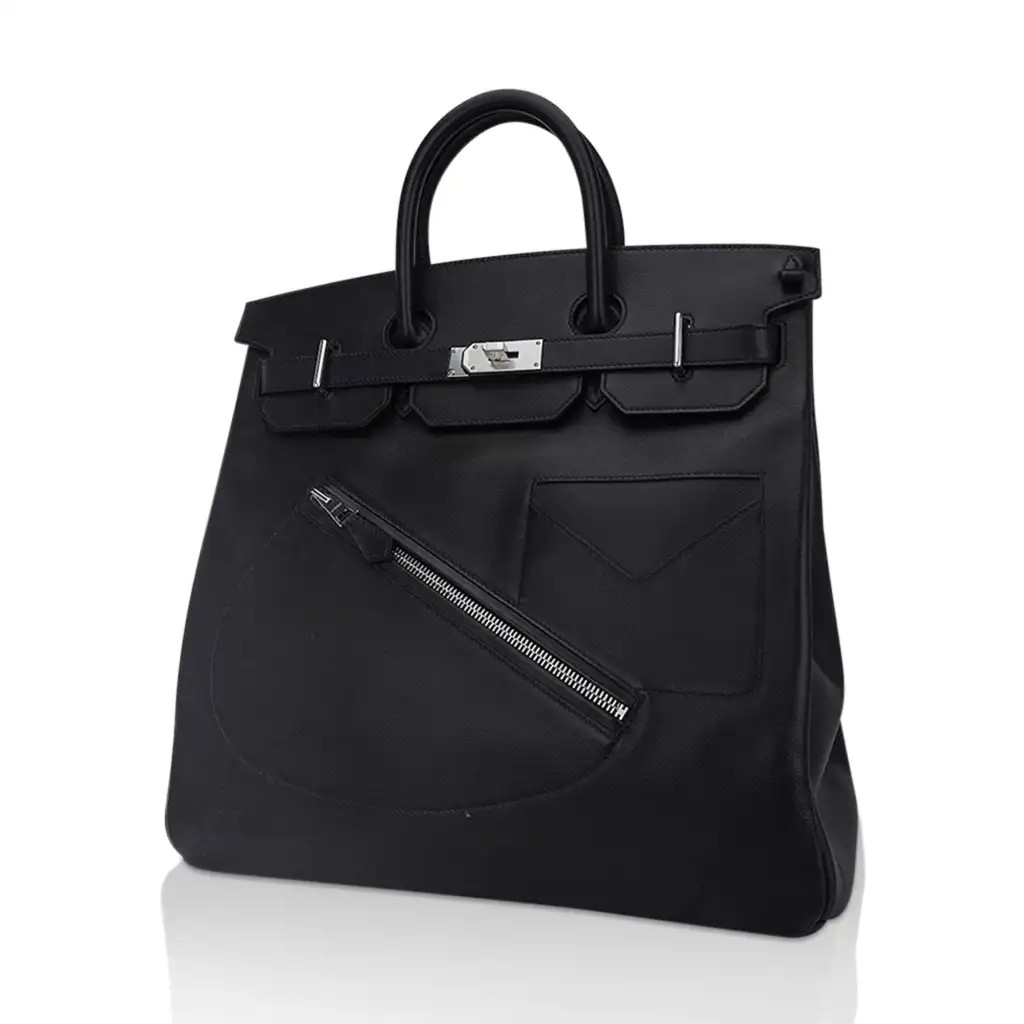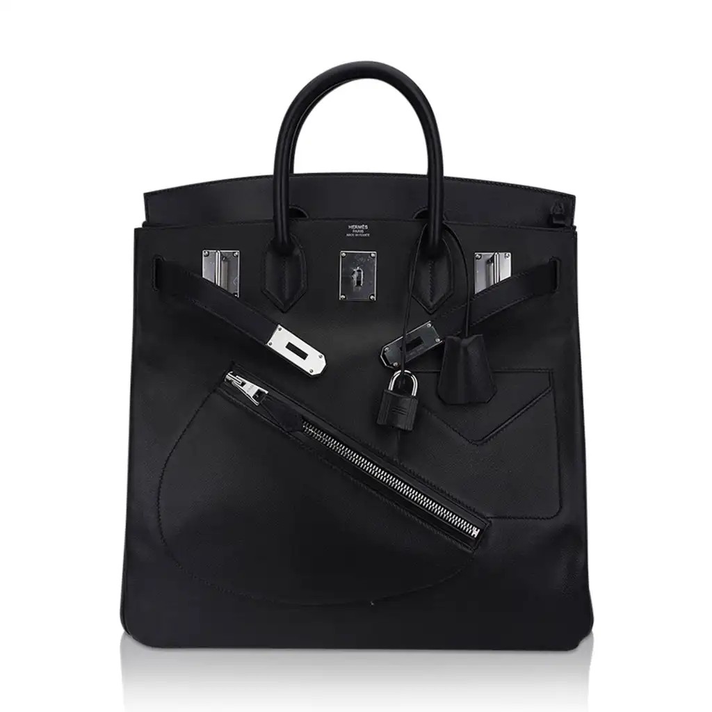Hermes limited edition HAC Rock Birkin 40 (Haut a Courroies) bag featured in Black and Volupto leather.