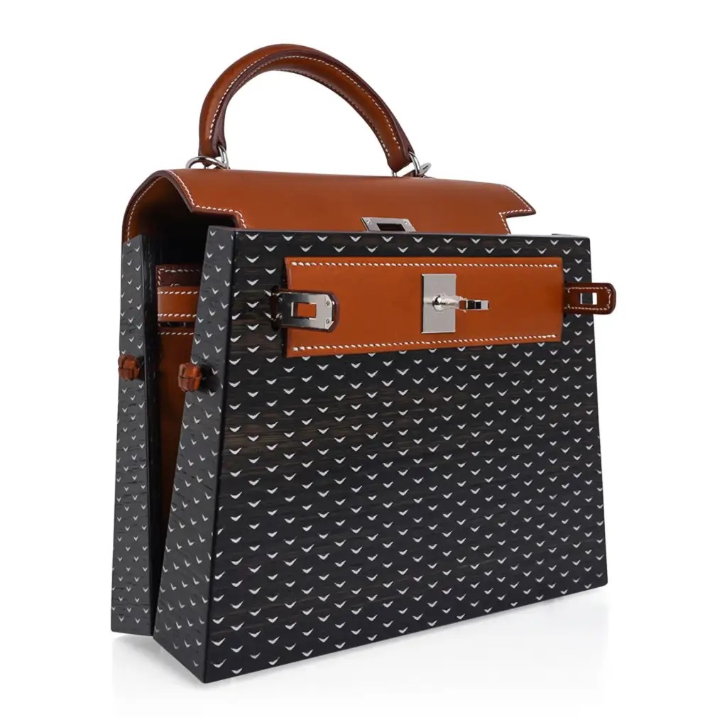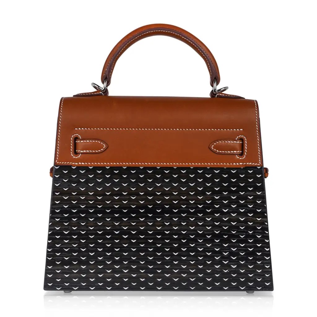 Guaranteed authentic exquisite limited edition Hermes Kellywood “Kelly Wood” 22 bag featured in bog oak and Barenia leather.