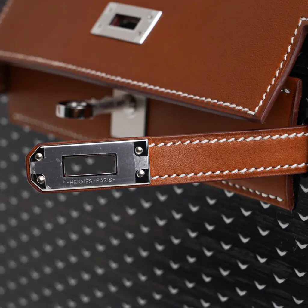 Hermes Limited Edition Kellywood 22 Bag Oak Bog, Barenia Leather, & Aluminum Inlay with Palladium Hardware