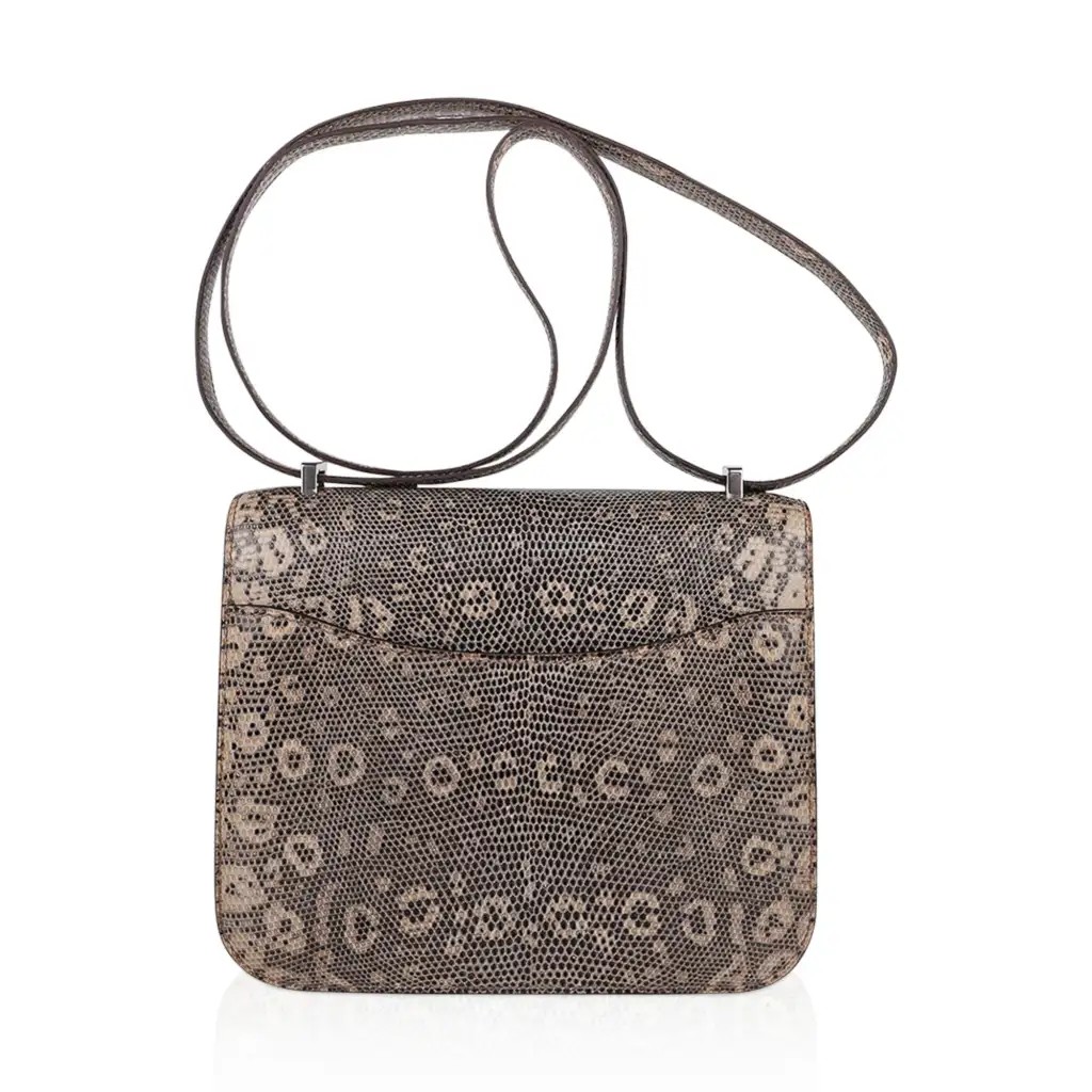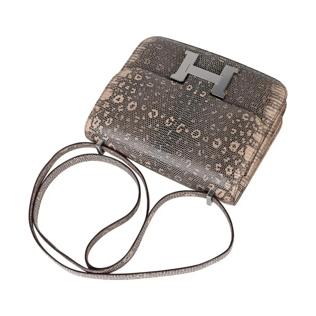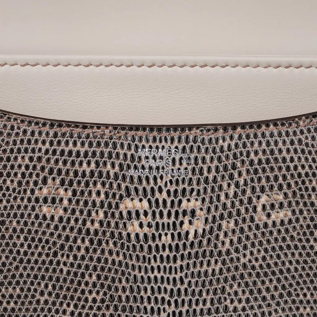 Guaranteed authentic Hermes Constance 18 bag featured limited edition Desert Lizard.