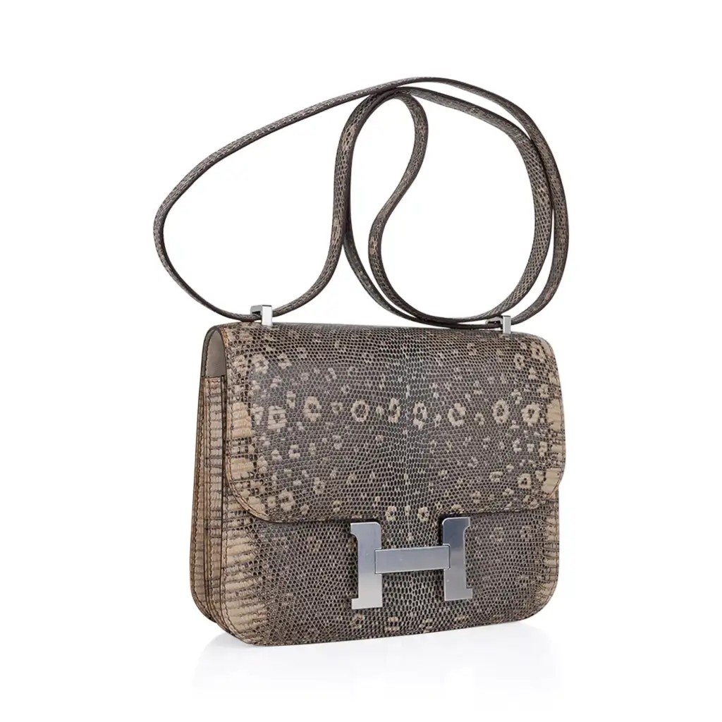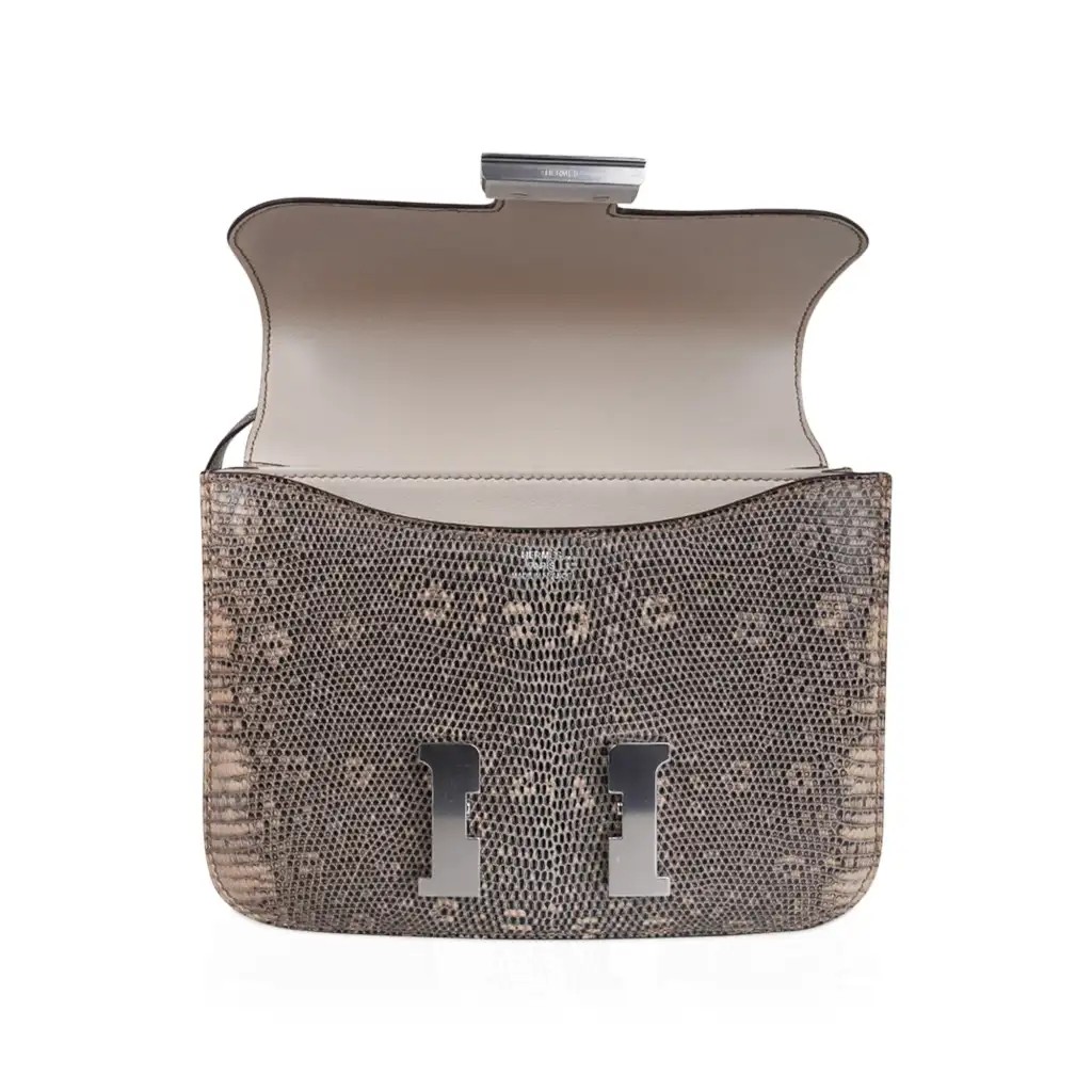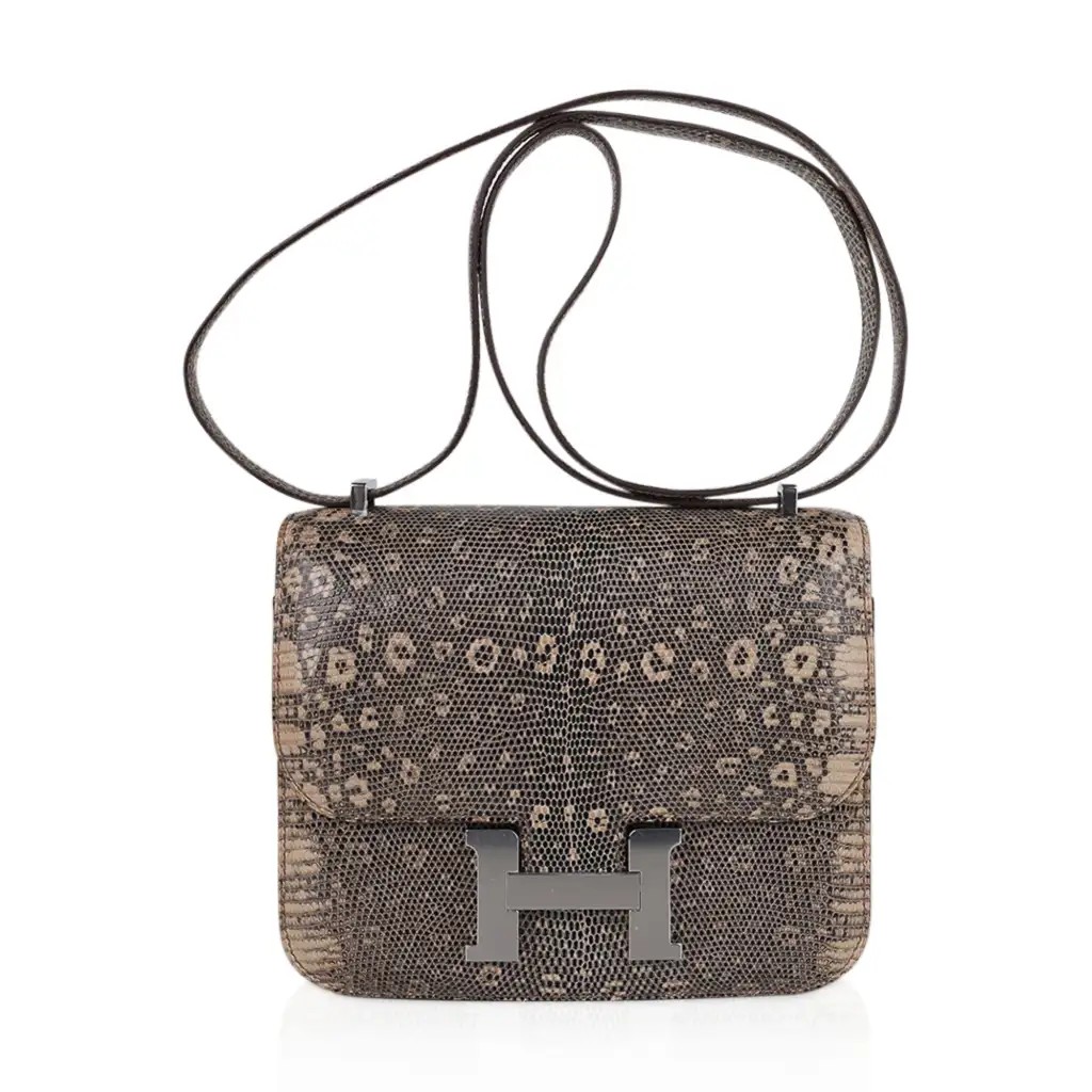 Guaranteed authentic Hermes Constance 18 bag featured limited edition Desert Lizard.