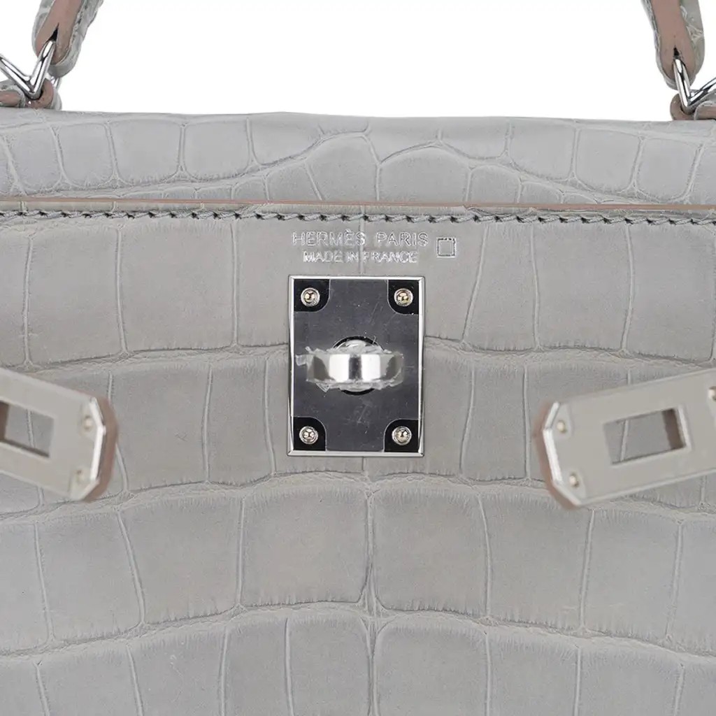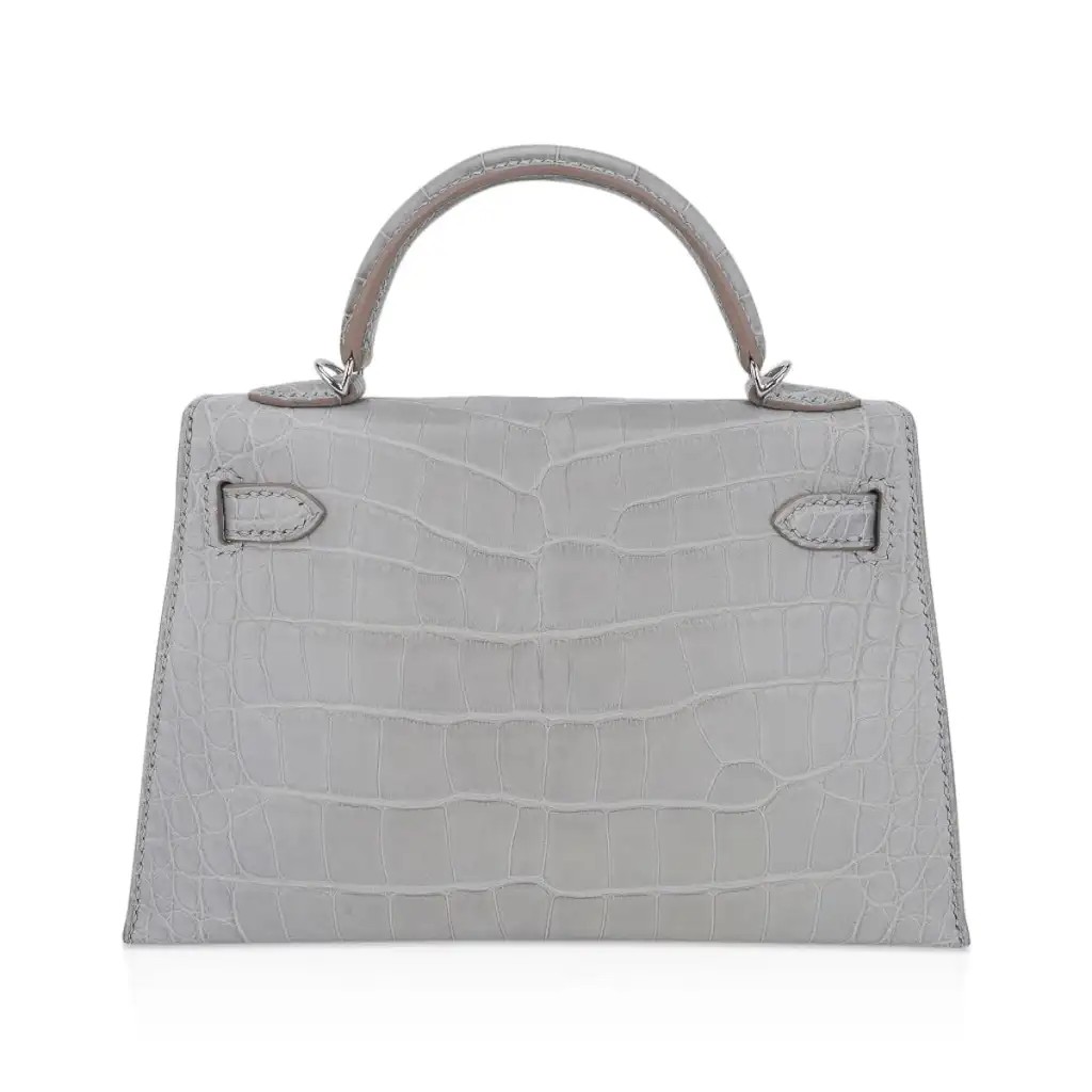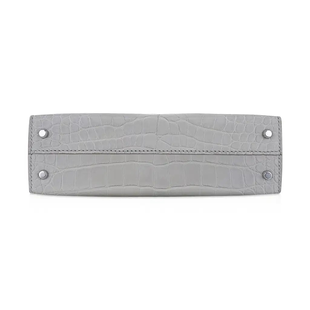 Hermes Limited Edition Mini Kelly 20 Sellier Matte Gris Perle Alligator Bag Palladium Hardware