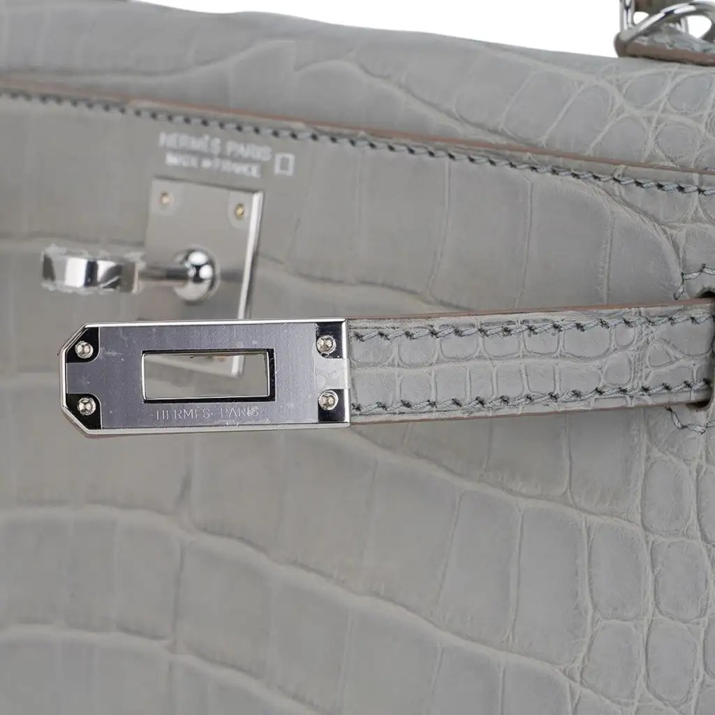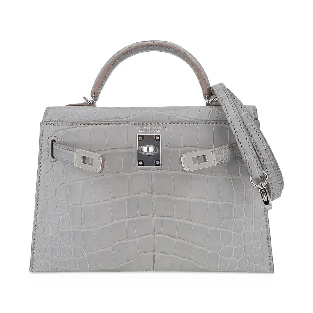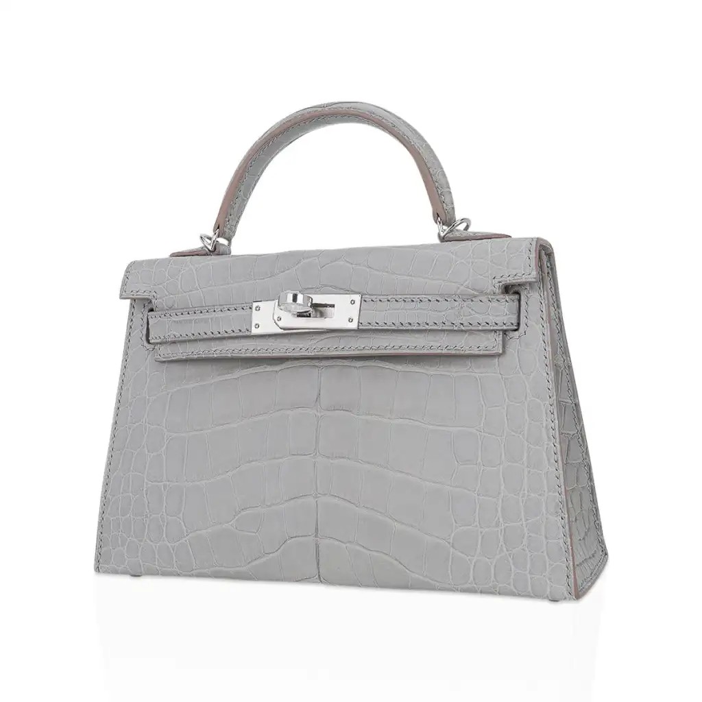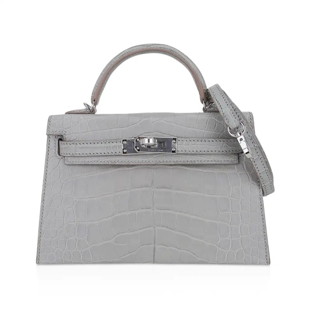 Hermes Limited Edition Mini Kelly 20 Sellier Matte Gris Perle Alligator Bag Palladium Hardware