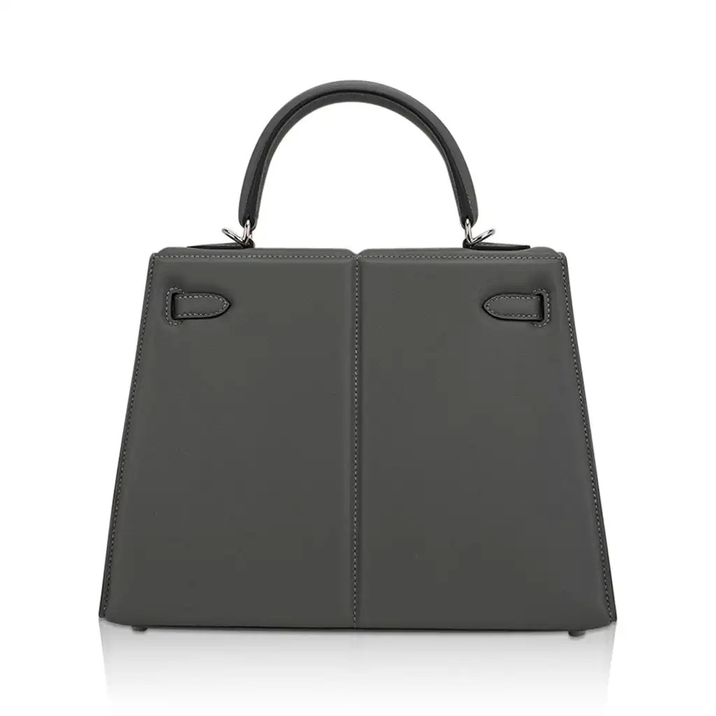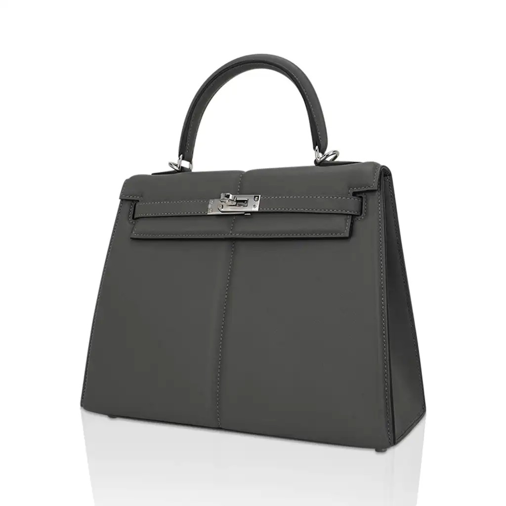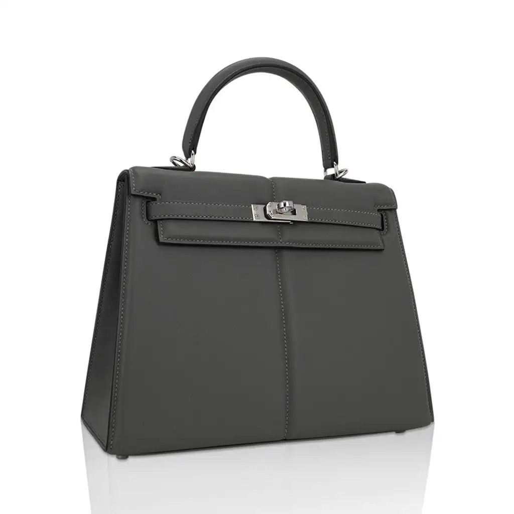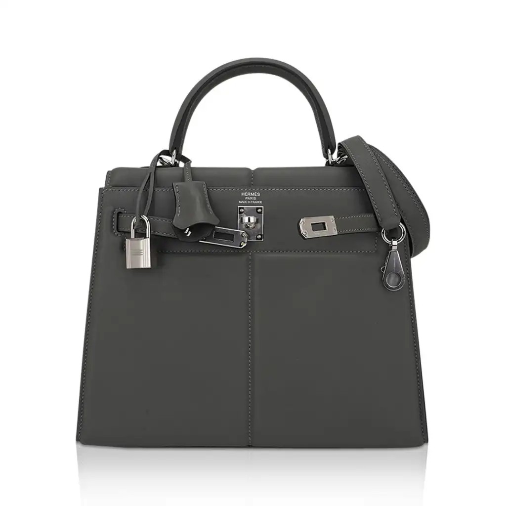 Guaranteed authentic Hermes Padded Kelly 25 bag featured in Gris Meyer.