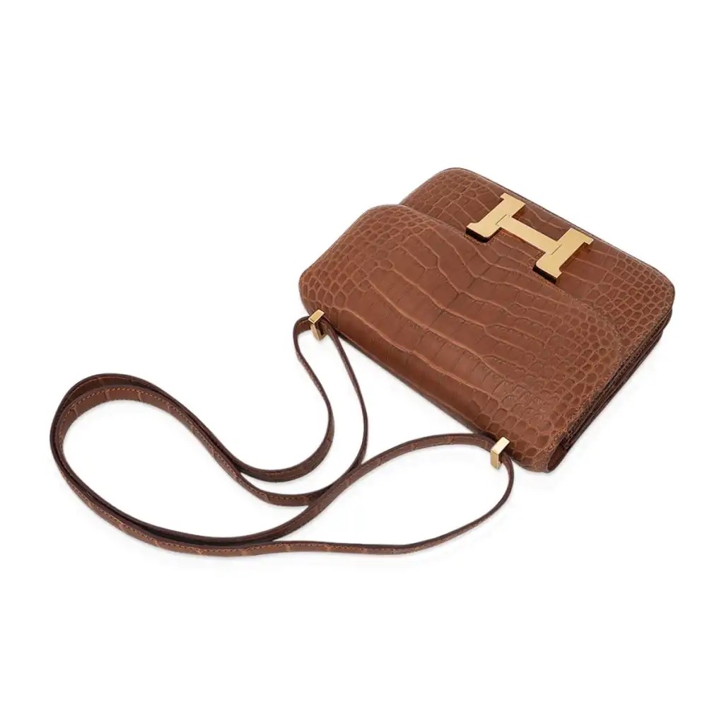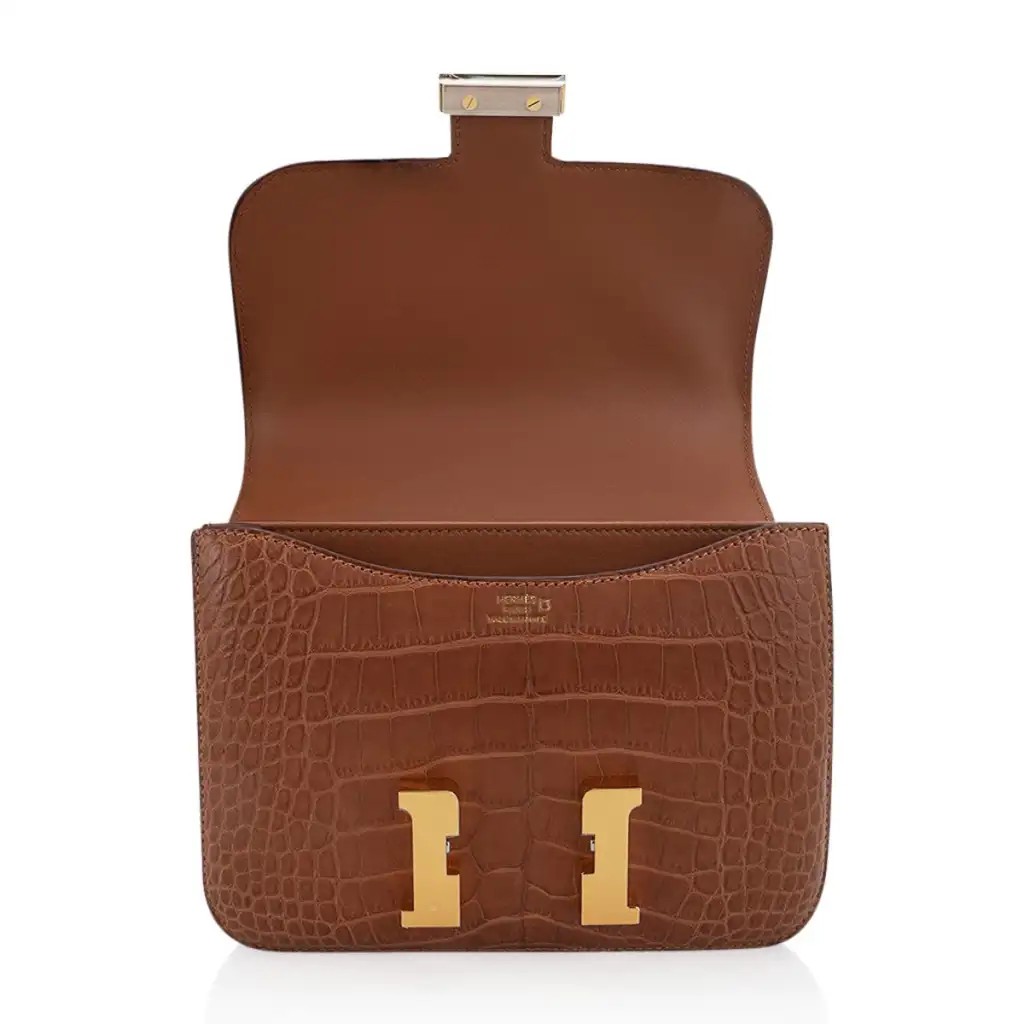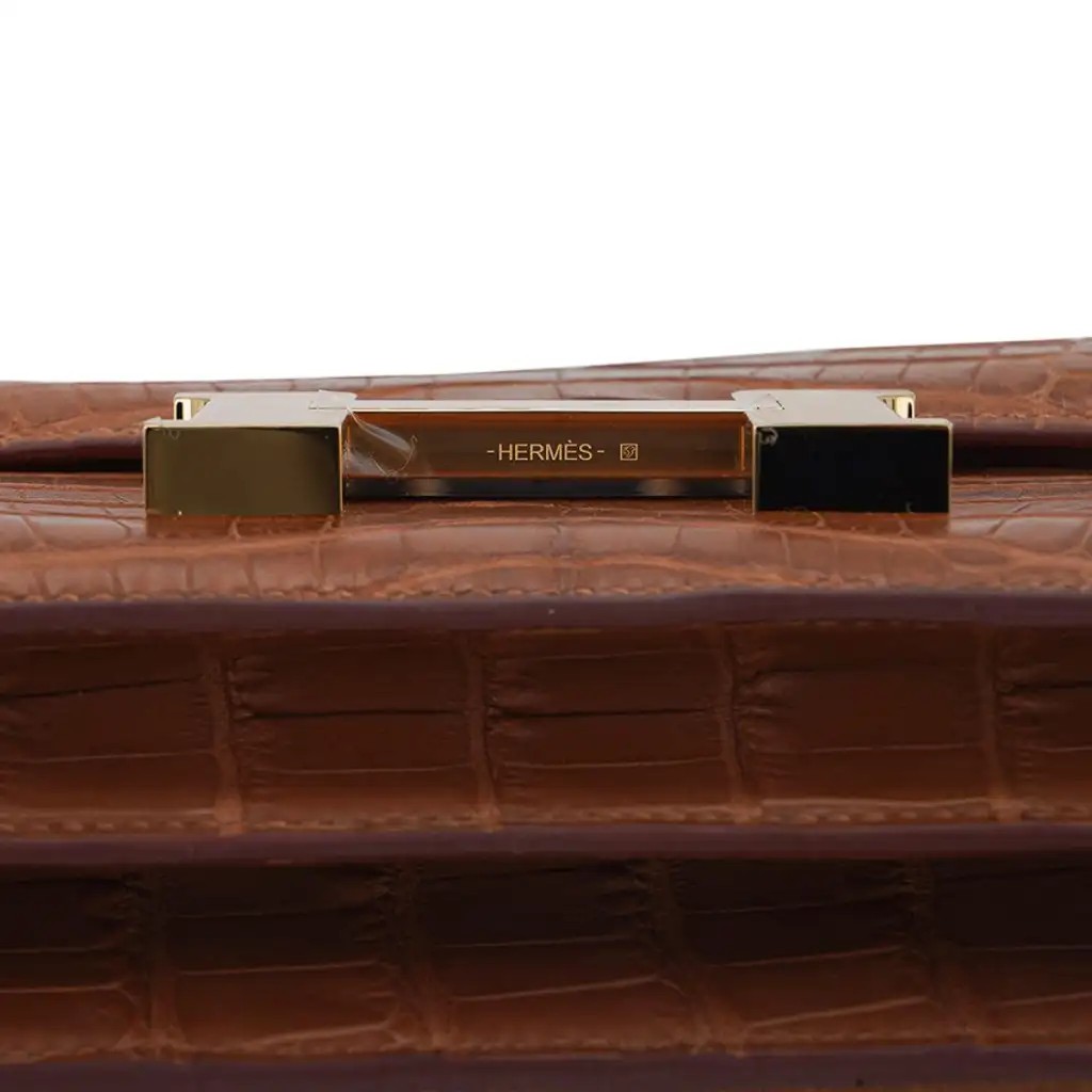 Hermes Mini Constance 18 Bag Gold Matte Alligator with Gold Hardware and Mirror