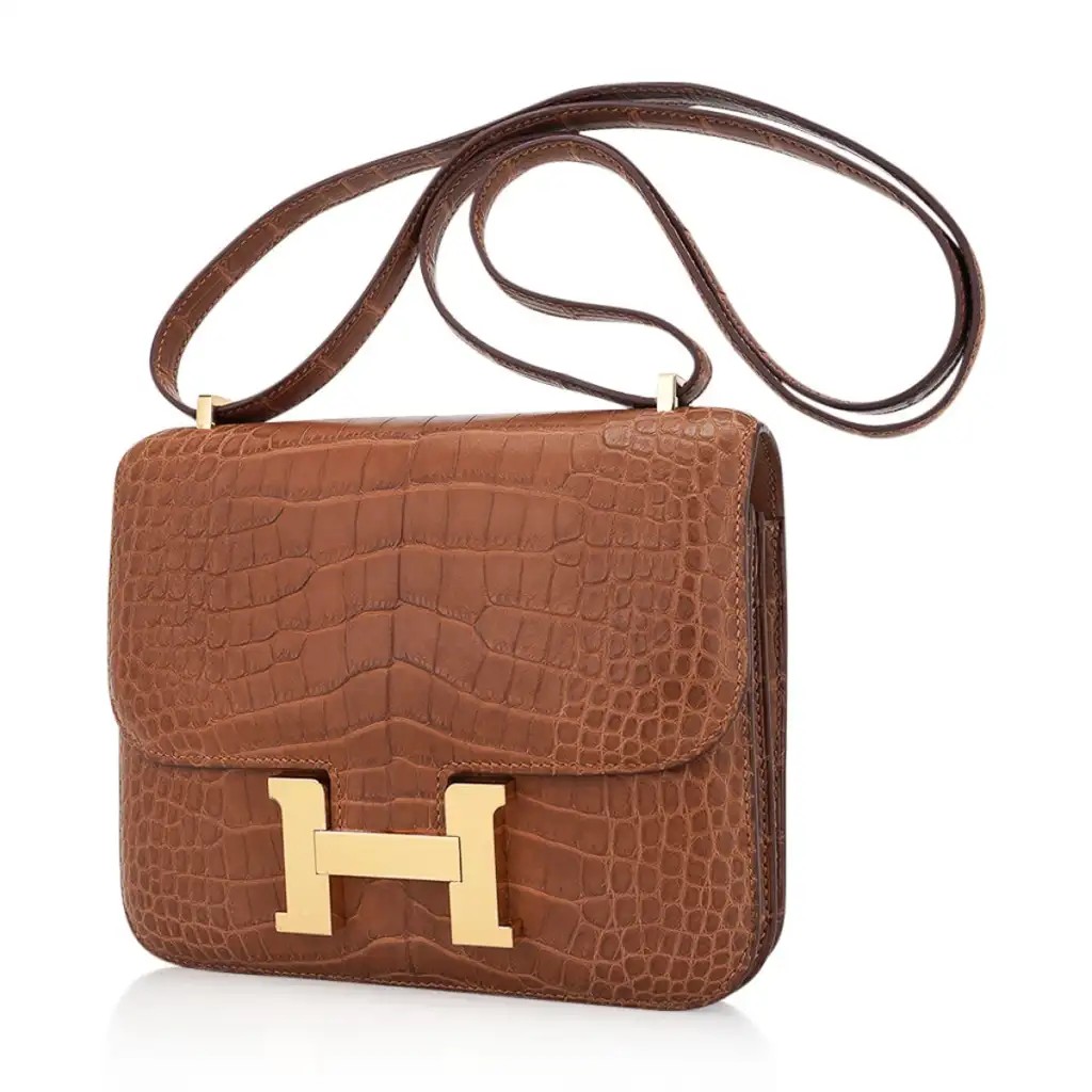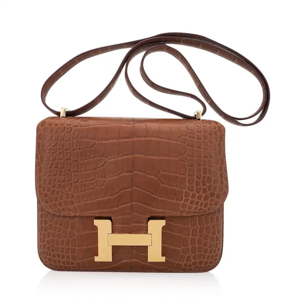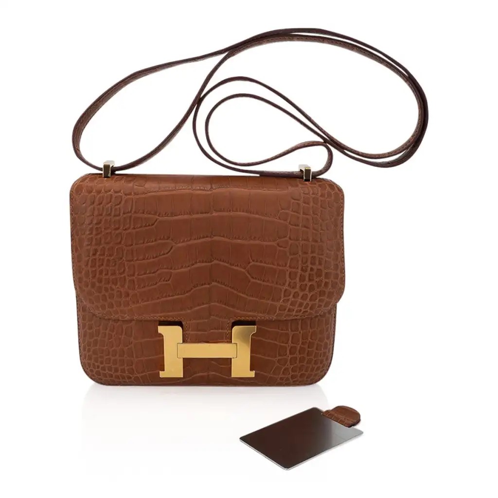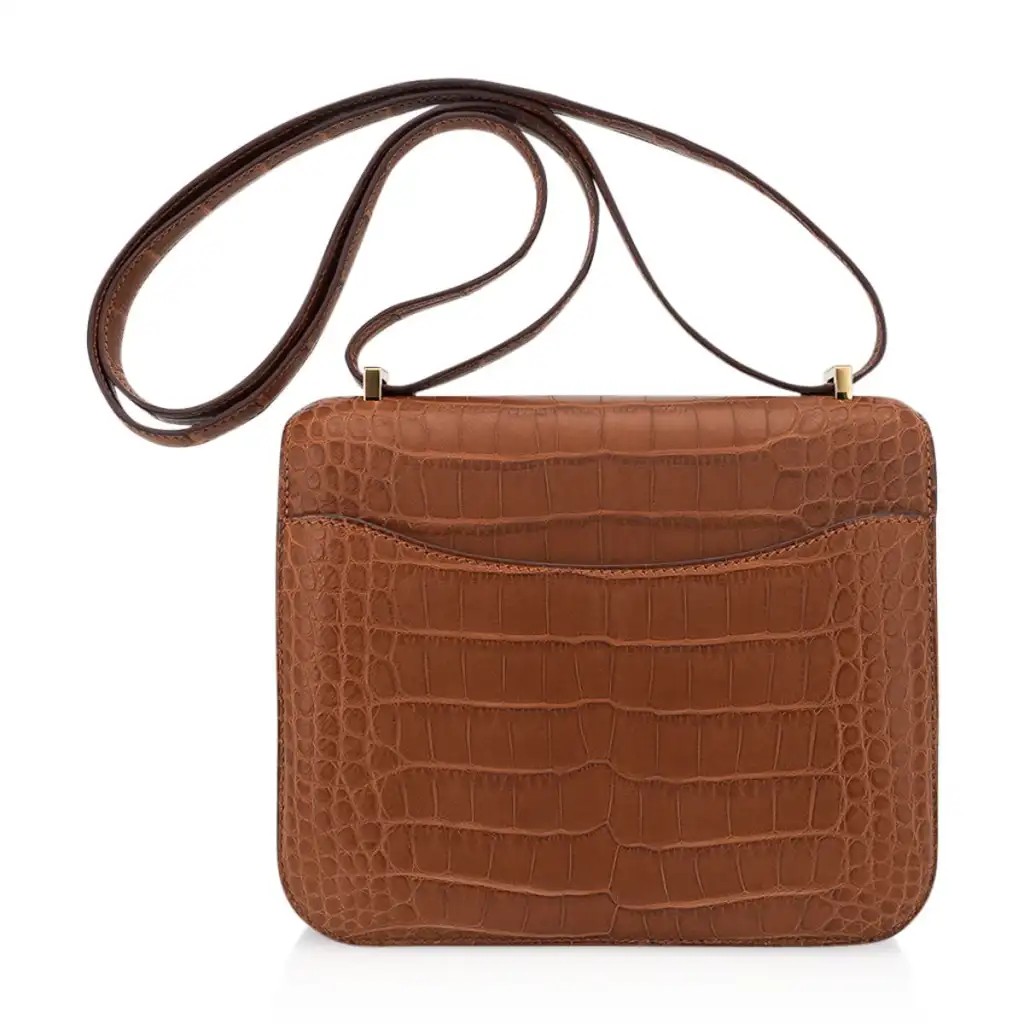 Hermes Mini Constance 18 Bag Gold Matte Alligator with Gold Hardware and Mirror