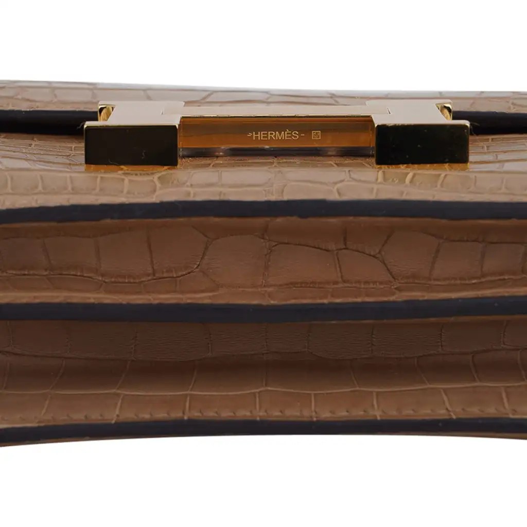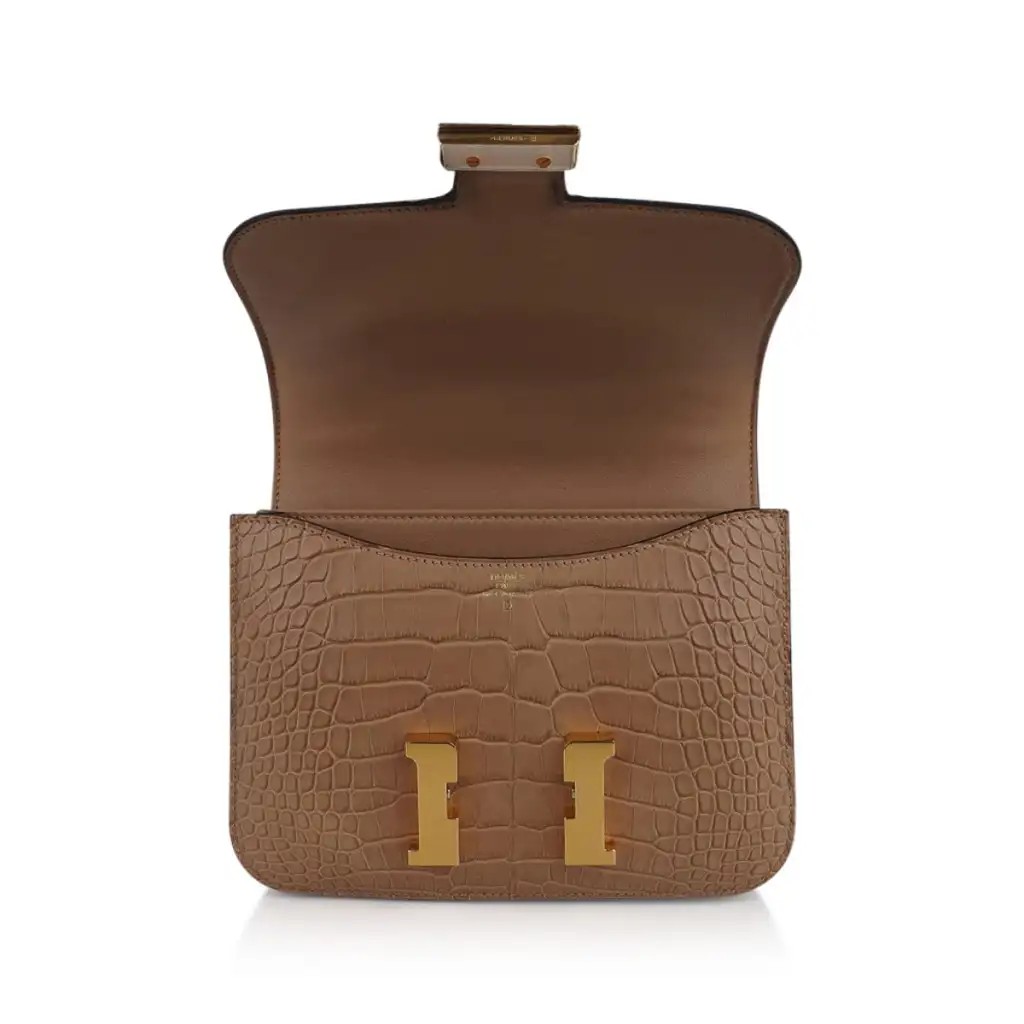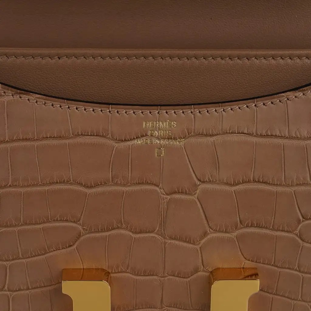 Guaranteed authentic Hermes 18 Constance in warm Chai Matte Alligator.