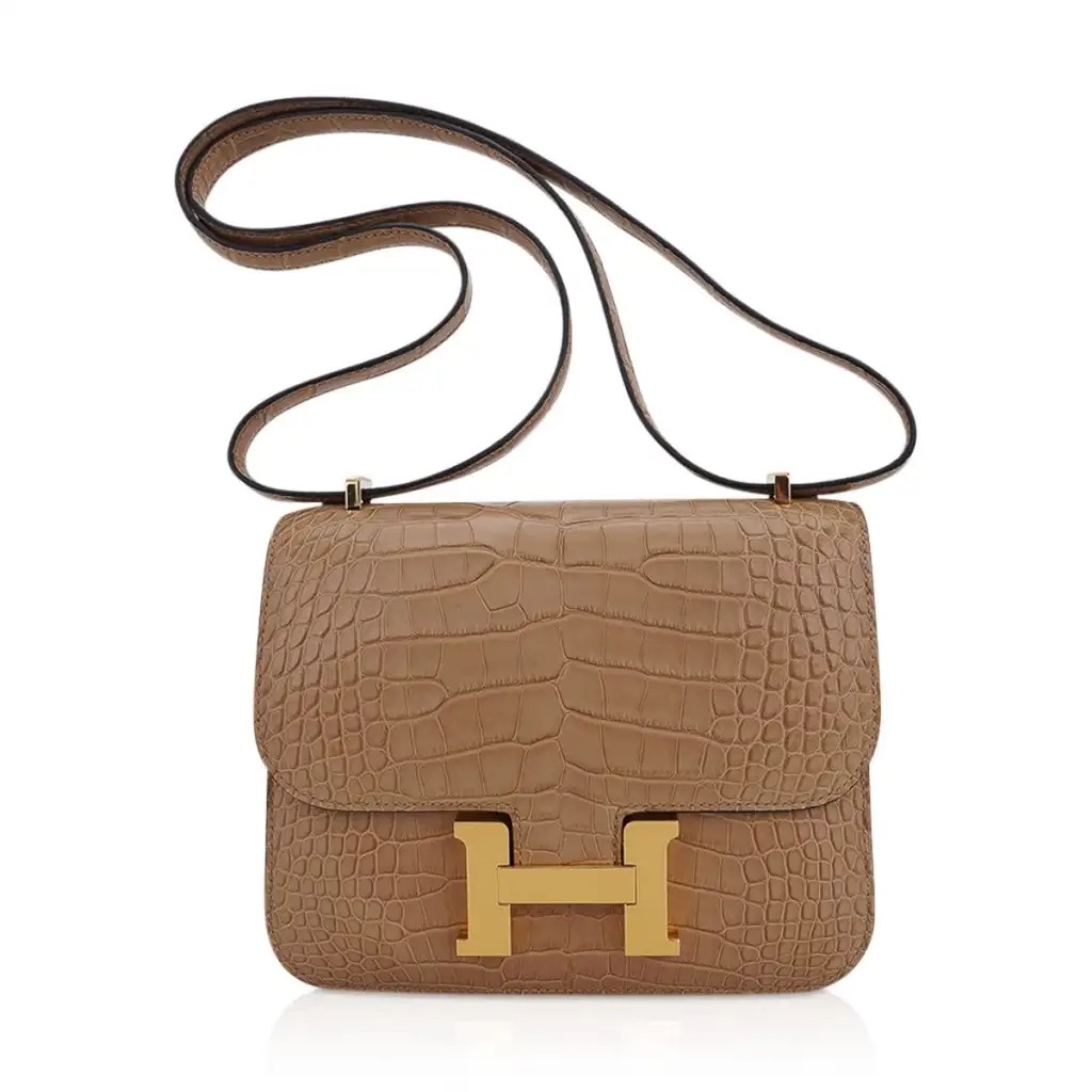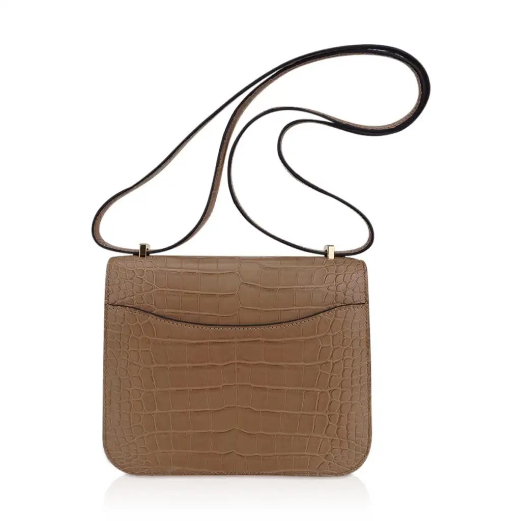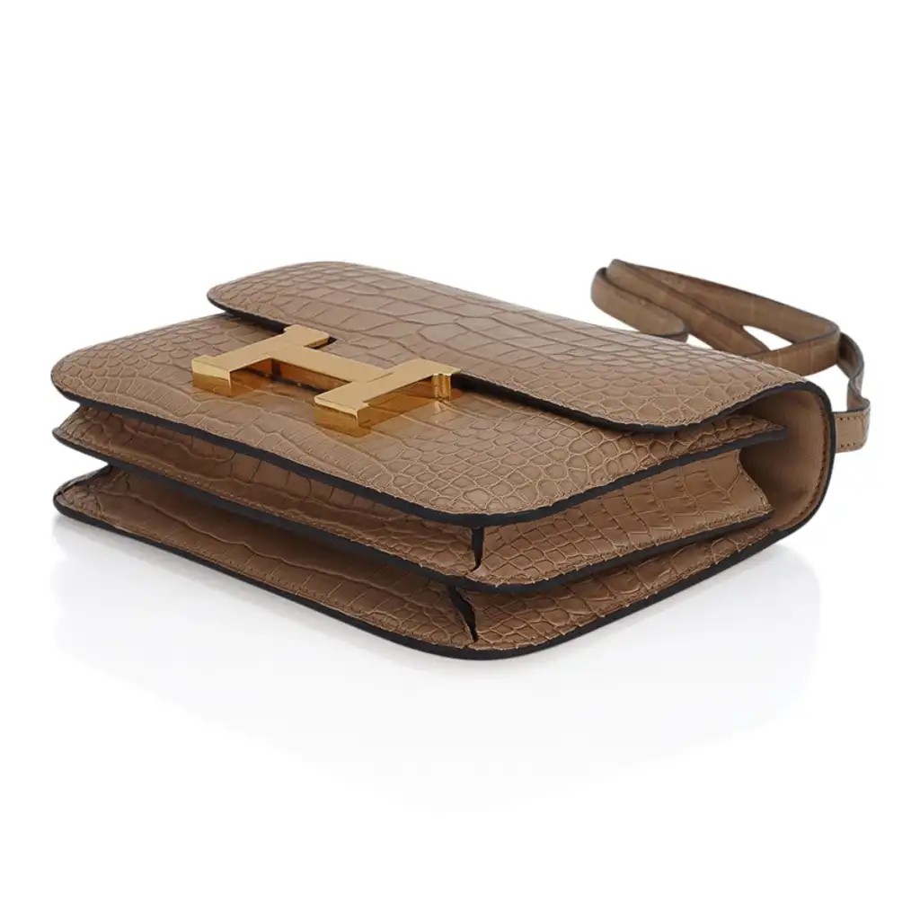 Guaranteed authentic Hermes 18 Constance in warm Chai Matte Alligator.