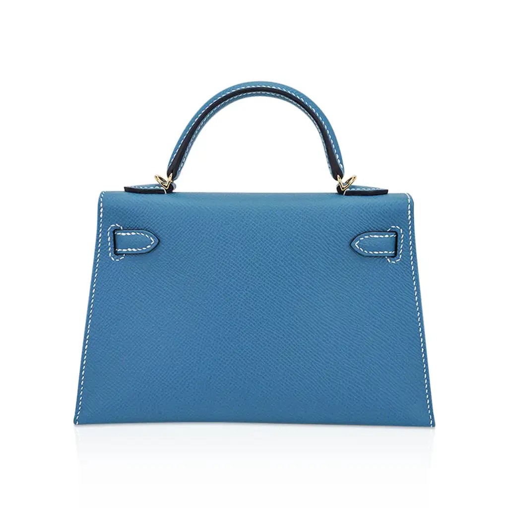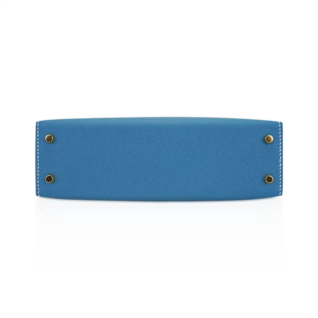 Hermes Mini Kelly 20 Bag Sellier New Blue Jean Epsom Leather with Gold Hardware