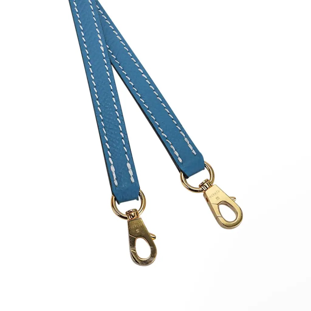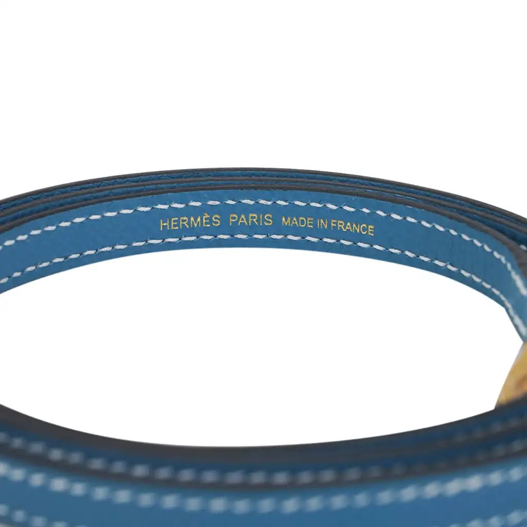Guaranteed authentic Hermes Kelly 20 Mini Sellier bag featured in New Bleu Jean.