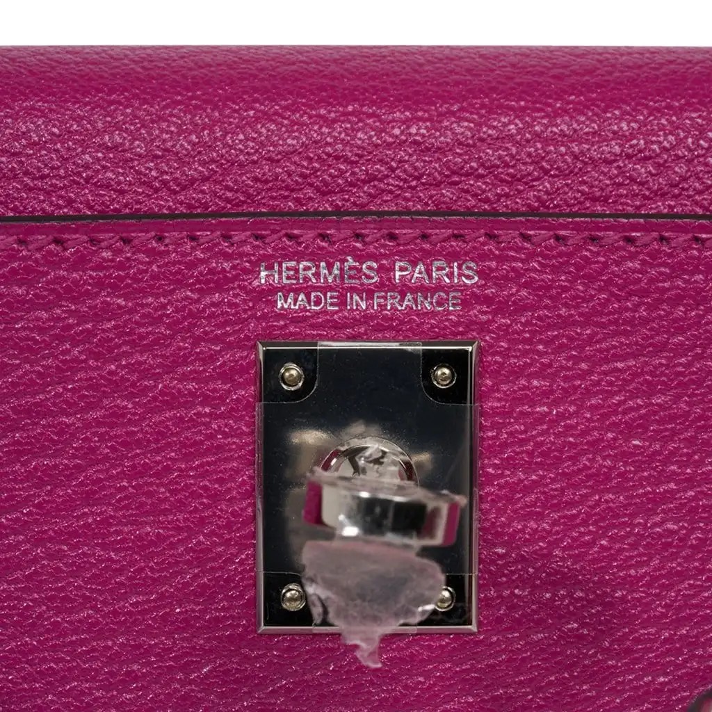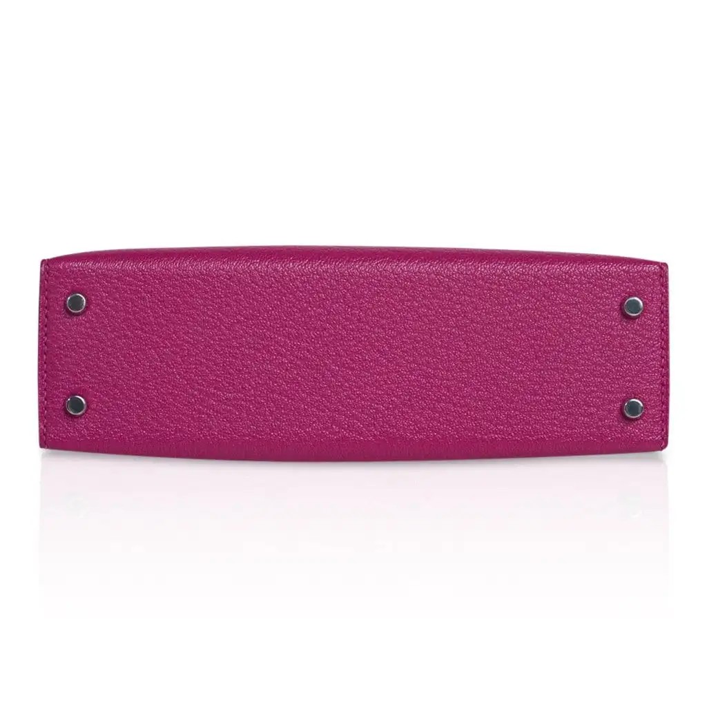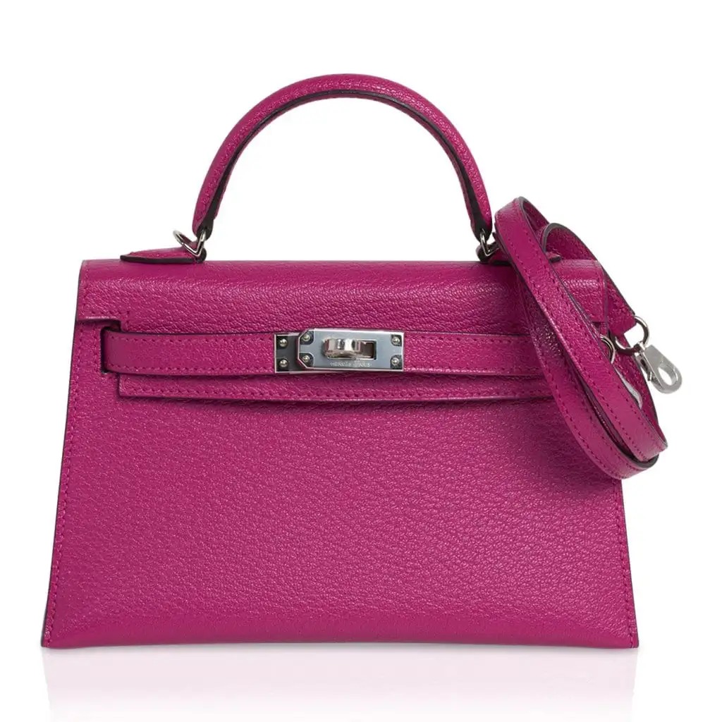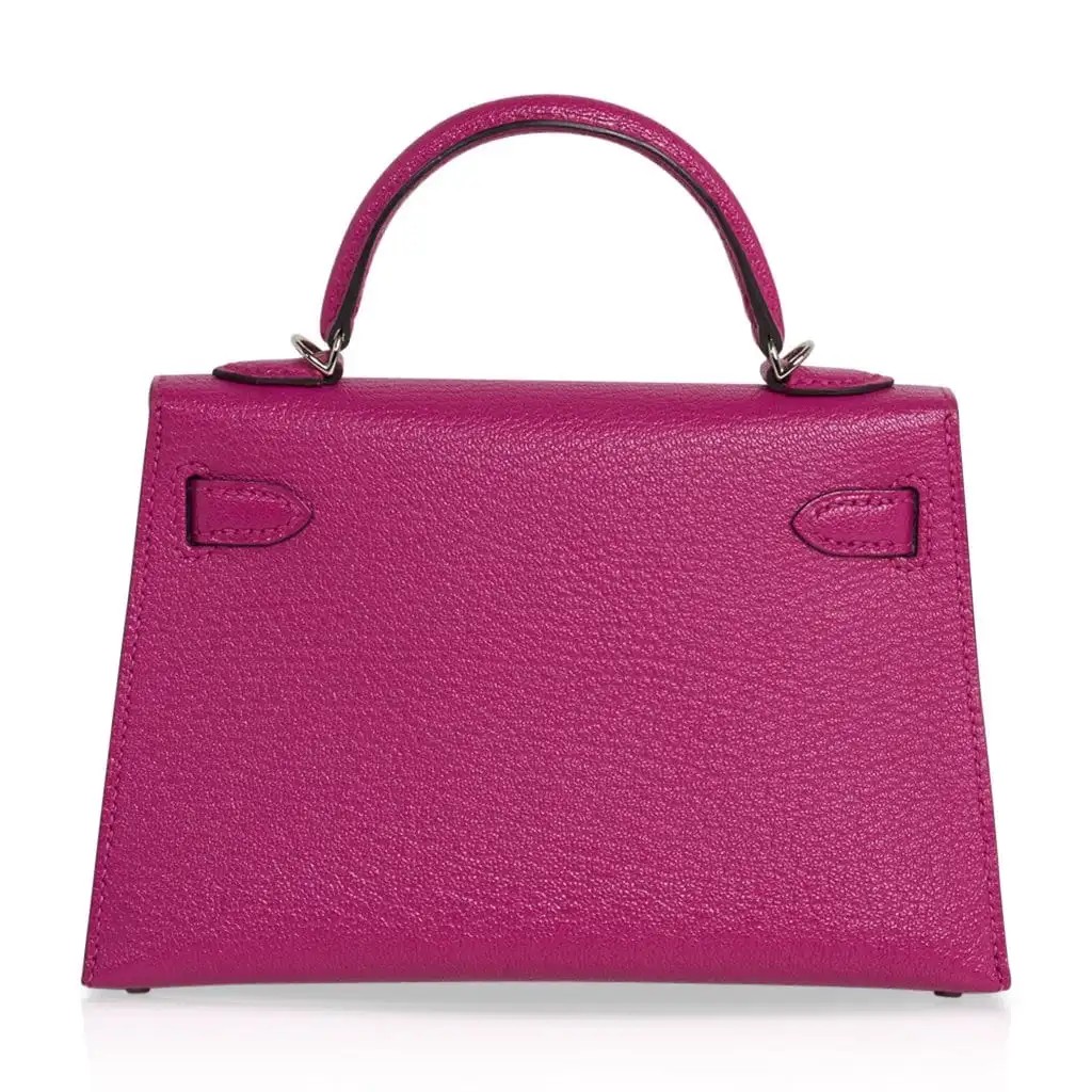 Hermes Mini Kelly 20 Bag Sellier Rose Pourpre Chevre Leather with Palladium Hardware