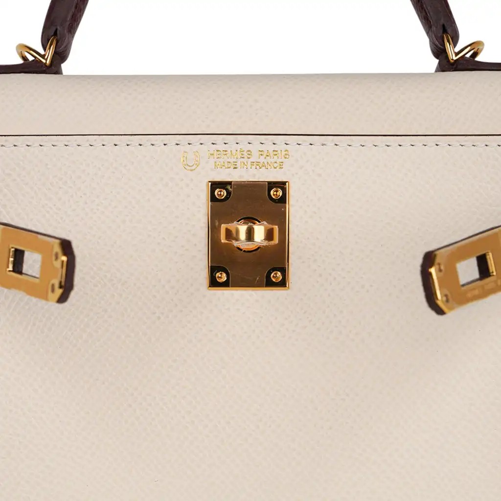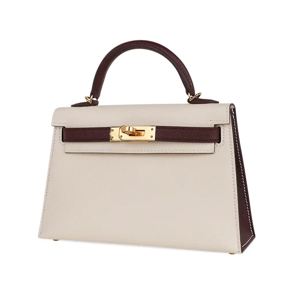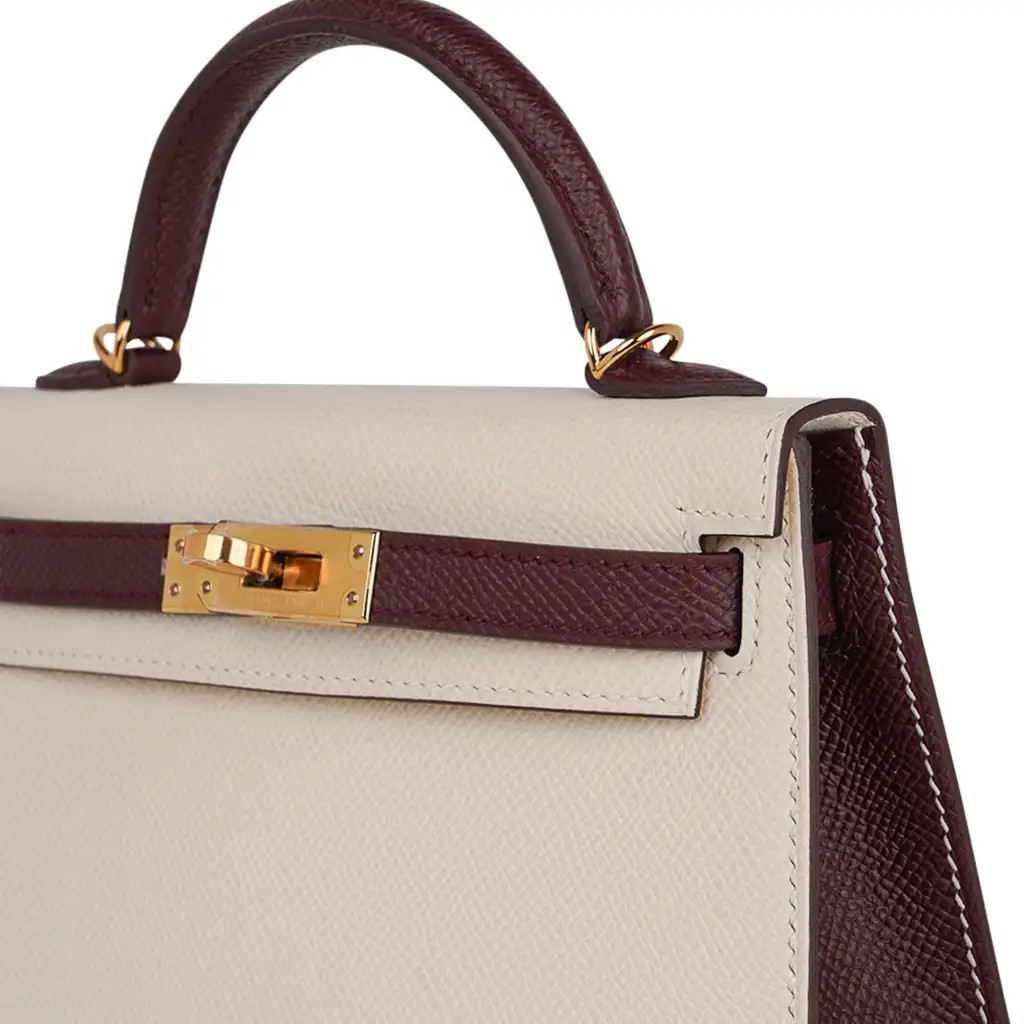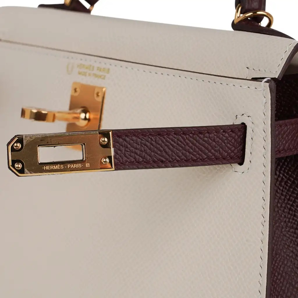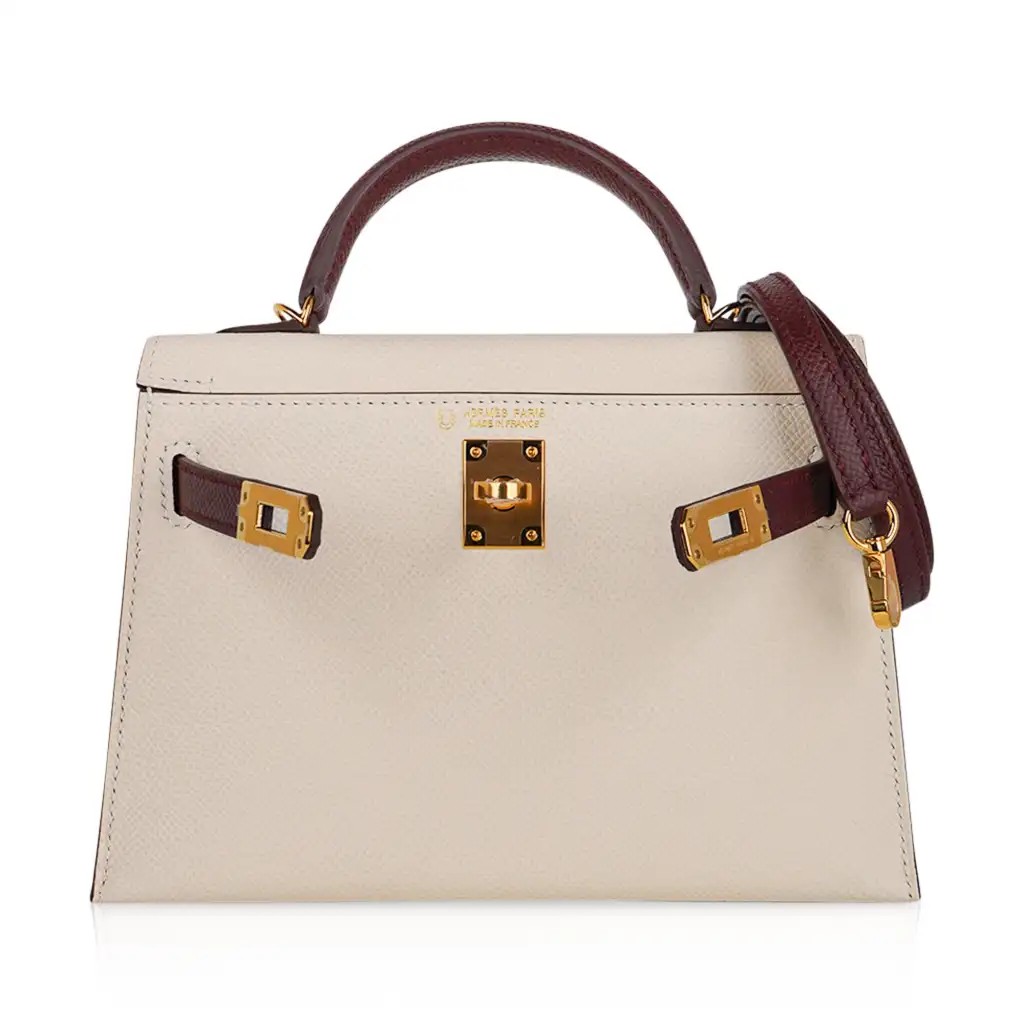 Be the first to review “Hermes Special Order HSS Mini Kelly 20 Sellier Bag Nata & Bordeaux Epsom Leather with Gold Hardware”