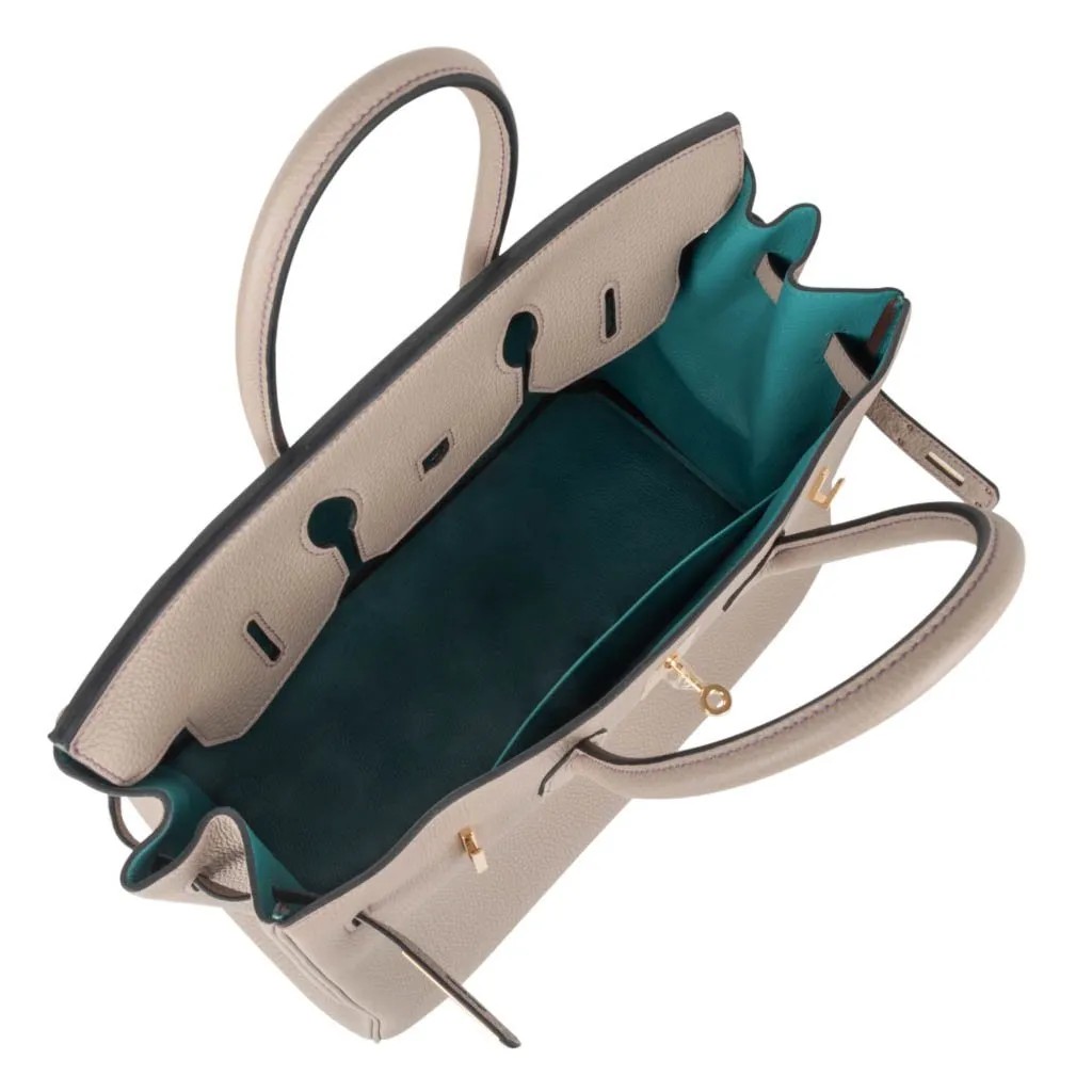 Hermes leather in soft Togo is supple and scratch resistant.