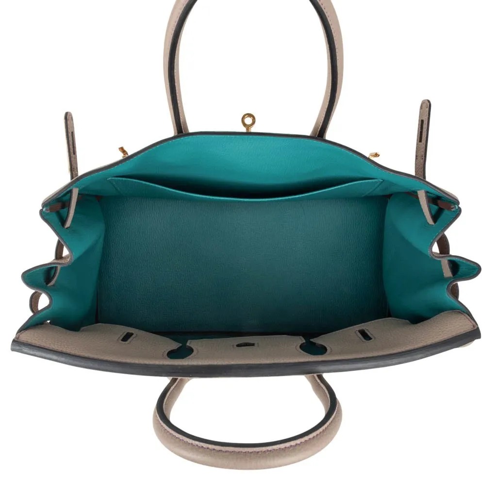 Hermes Special Order HSS Tri Colour Birkin 35 Bag Gris Tourterelle & Blue Paon Purple Stitching with Gold Hardware
